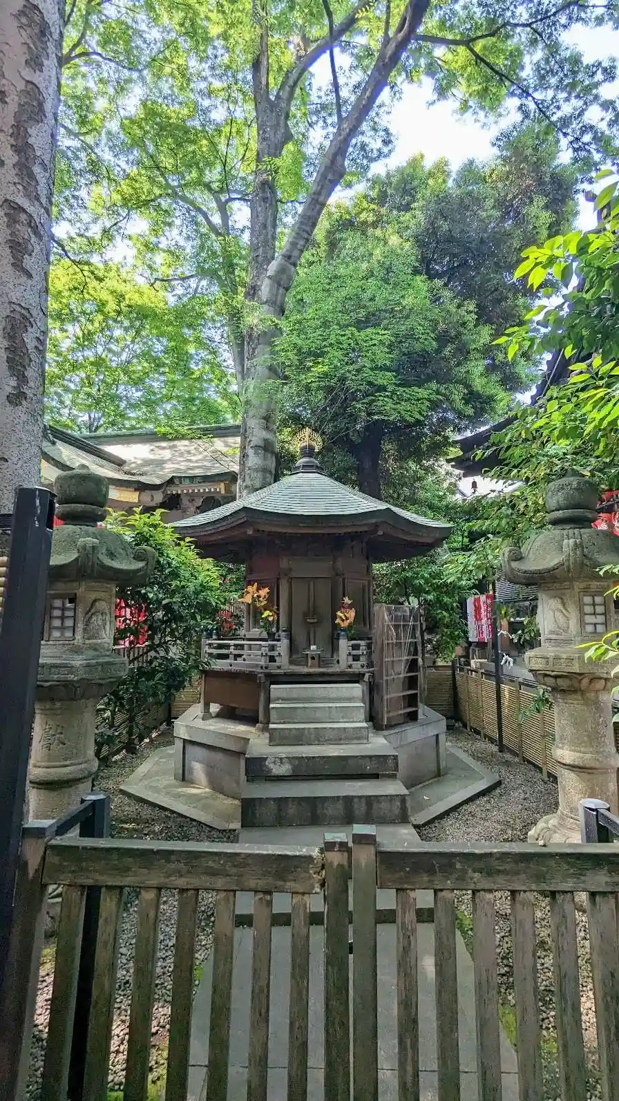 日枝神社様のあとに羊羹で有名な「とらや」さんへ行こうと歩いていたら屏の上に赤い提灯がズラ〜っと並んでいる神社様らしき建物を発見!!