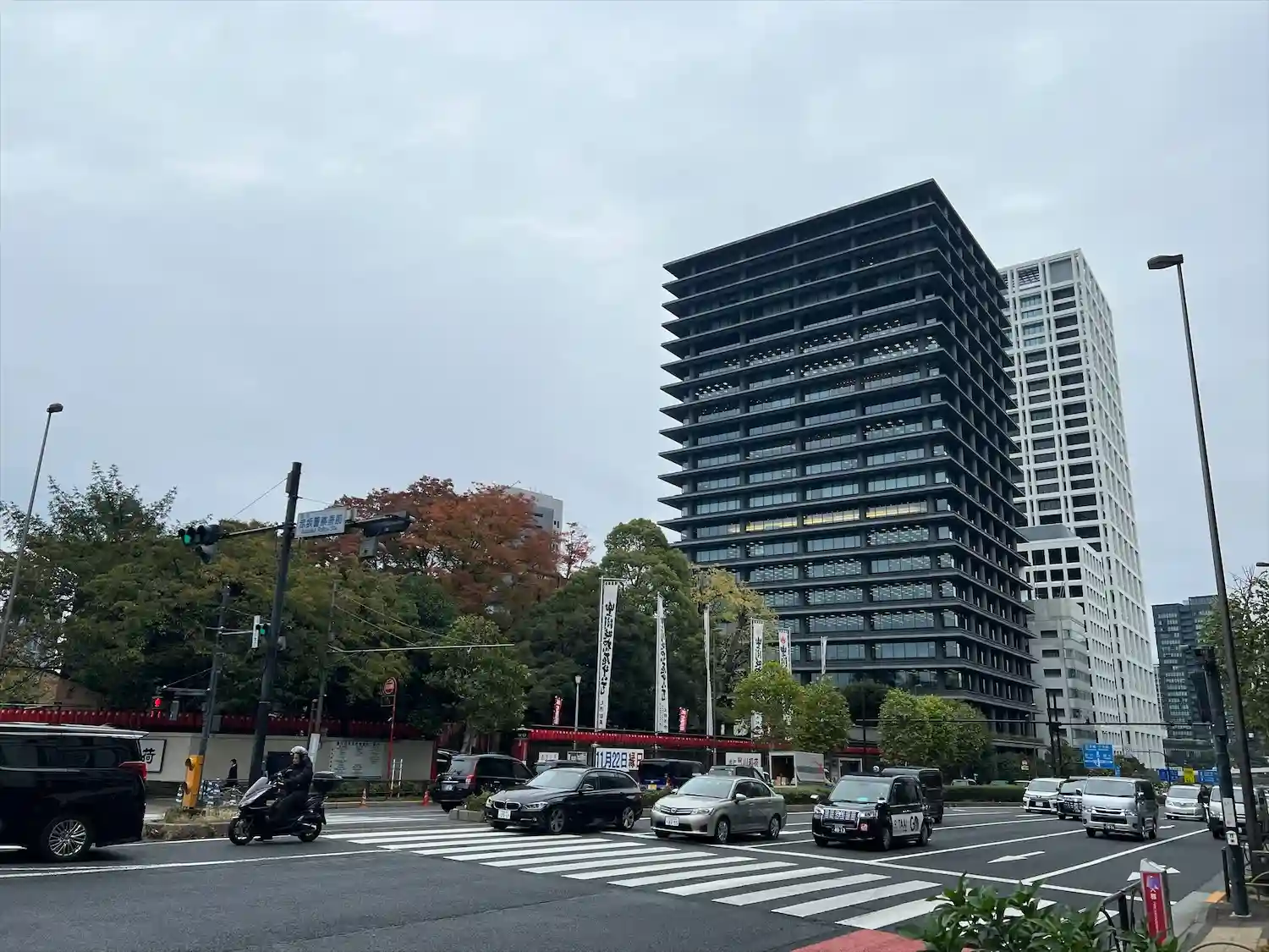 左手に東京駅が見えました。ここから先のお堀沿いは銀杏並木になっているらしく、そこら中潰れたぎんなんだらけだったので、お堀から離れて街中を歩いて行きました。