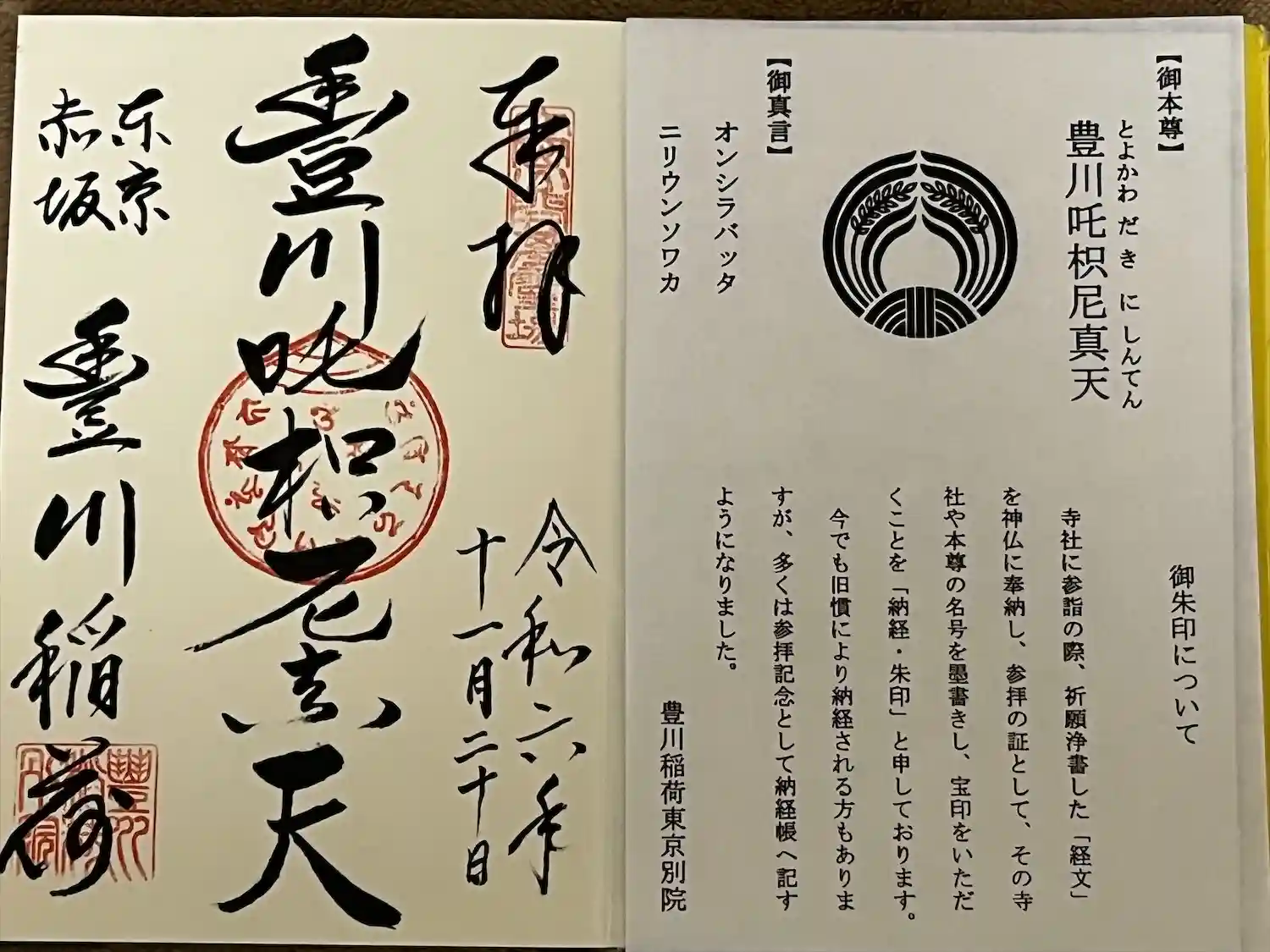 右下が豊川稲荷東京別院の御朱印帳