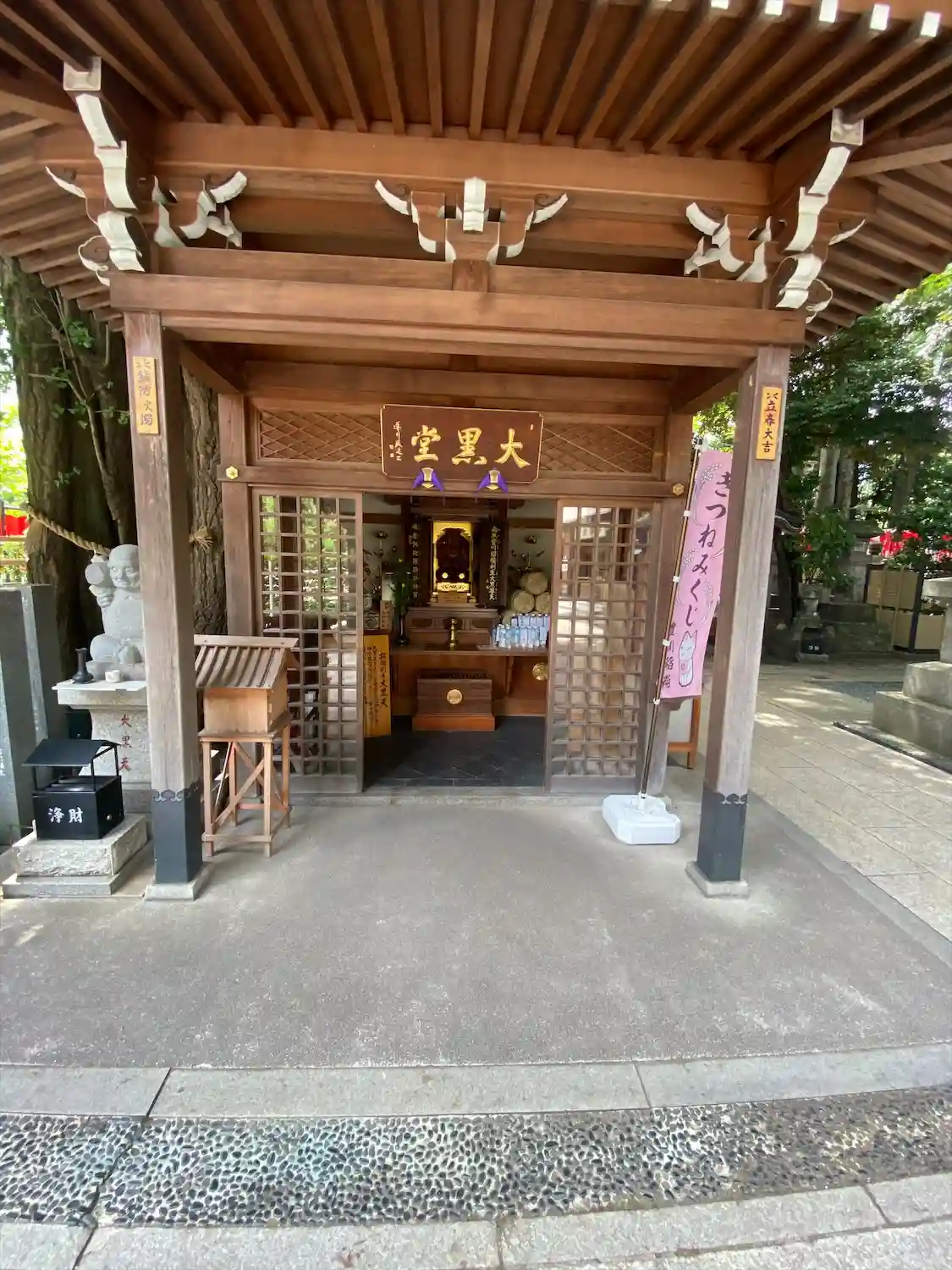 手水舎前の大黒天さまのお堂です。