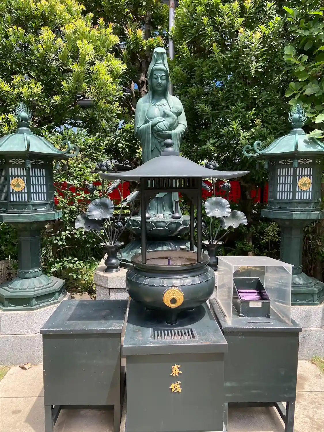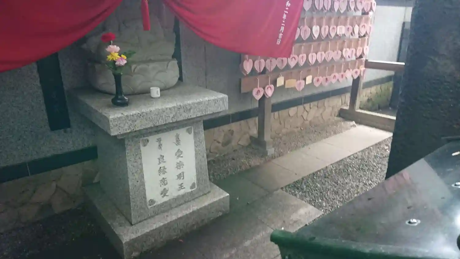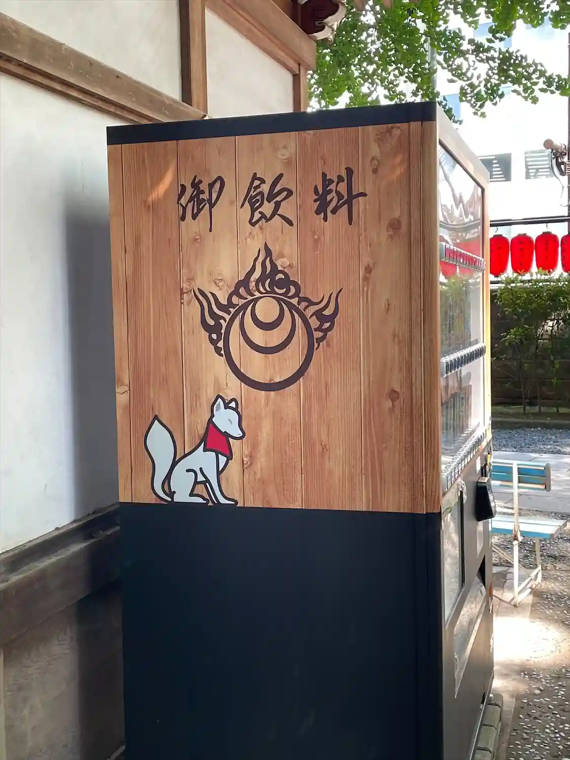 赤の提灯に囲まれた寺院です。文字上の白のマークは吒枳尼真天のマークです。