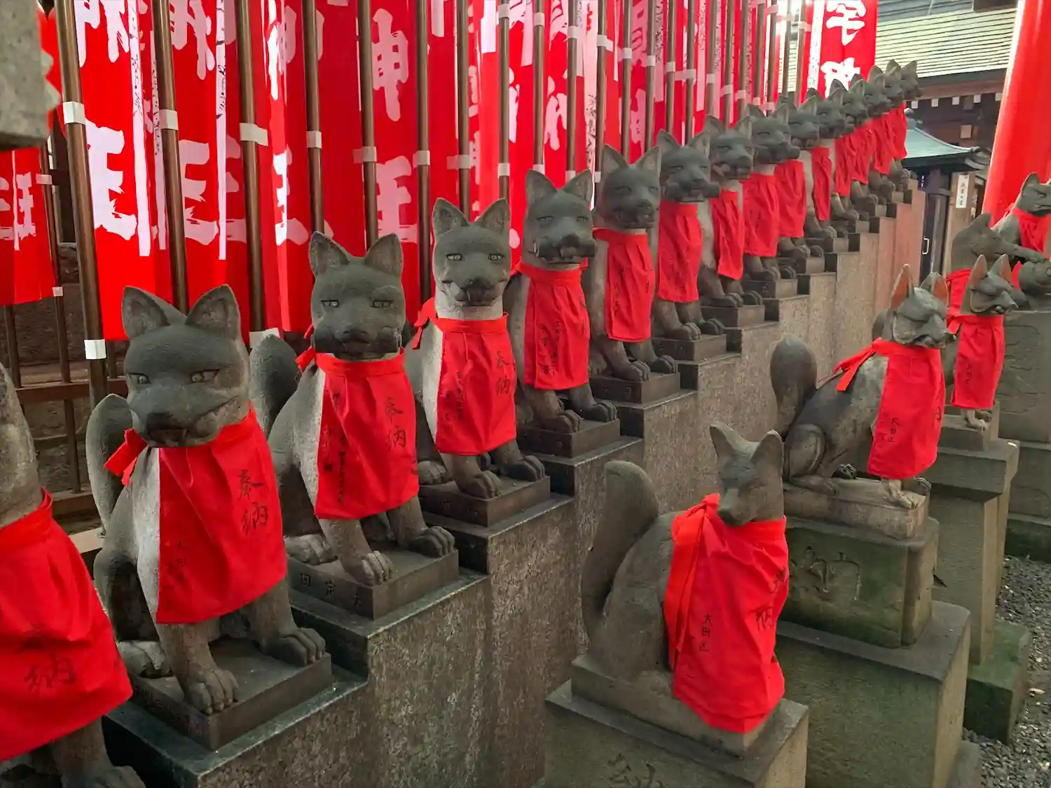 境内にはお狐さんがたくさんい…