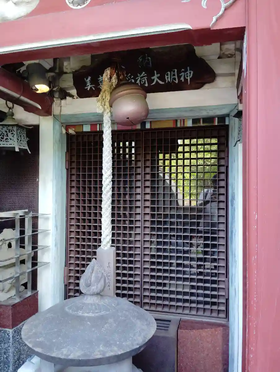 赤坂警察のすぐそば、とらやの裏手にあるとてもお稲荷さんと思えないモダンな建物の中にあります。どう見ても狐でなく猫にしか見えない本尊や「この神様にお願いする方は蛸を召し上がらぬこと」と書かれていること等ハテナが一杯のお稲荷さんでした。特に欄間の「蛸あるいは魂を食べる猫と赤い人」はシュールです。
