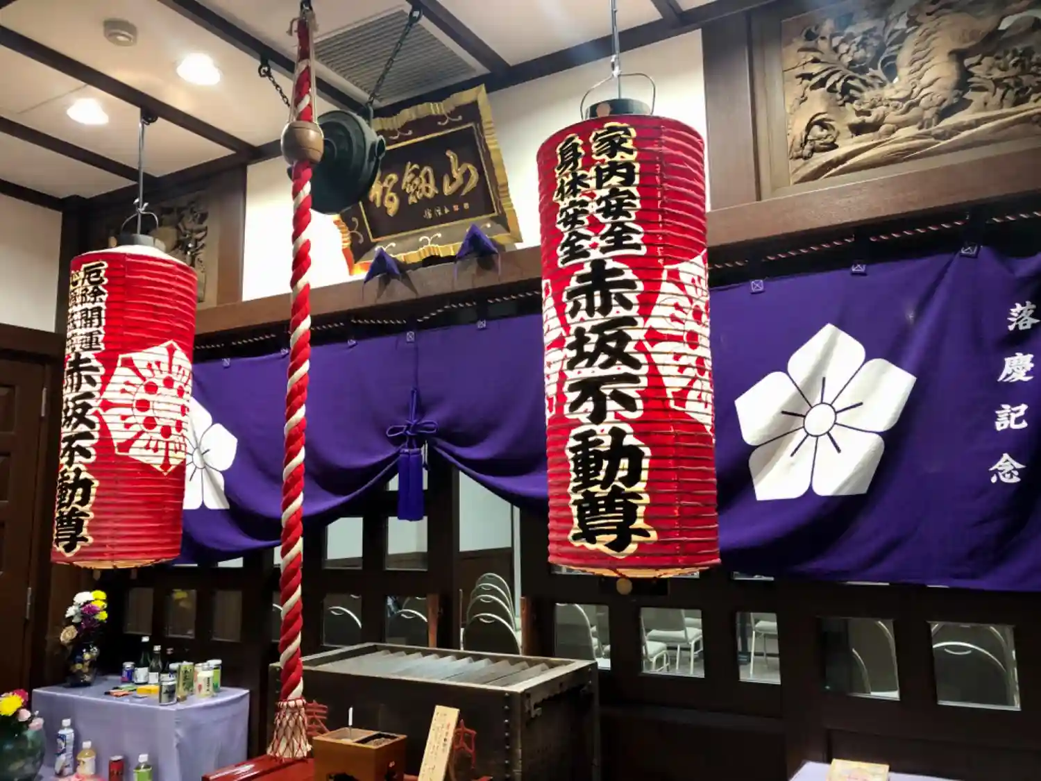 ロビーから御本堂の不動像を拝むことができます