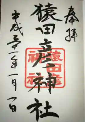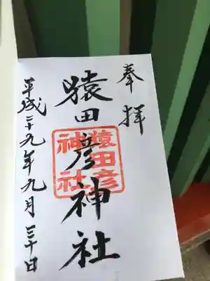 御朱印の先着でいただいた栞。猿のキャラクターが可愛い。