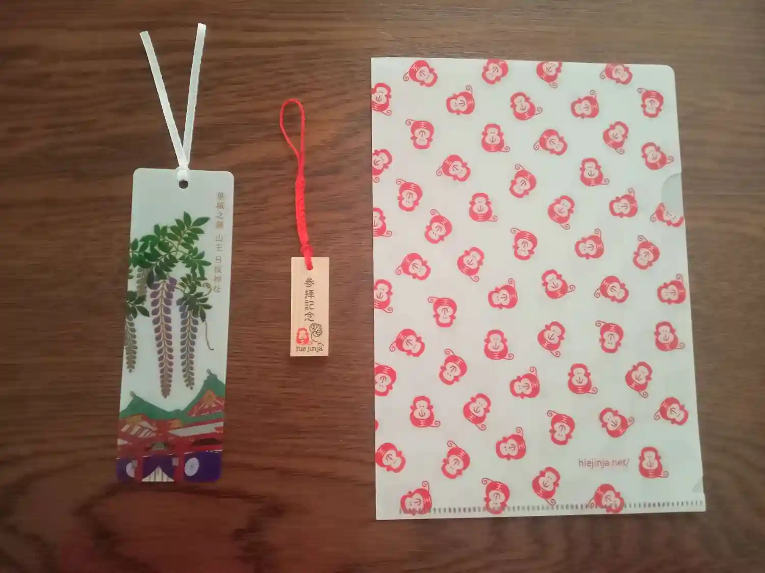 この日頂いた栞と木札ストラップ