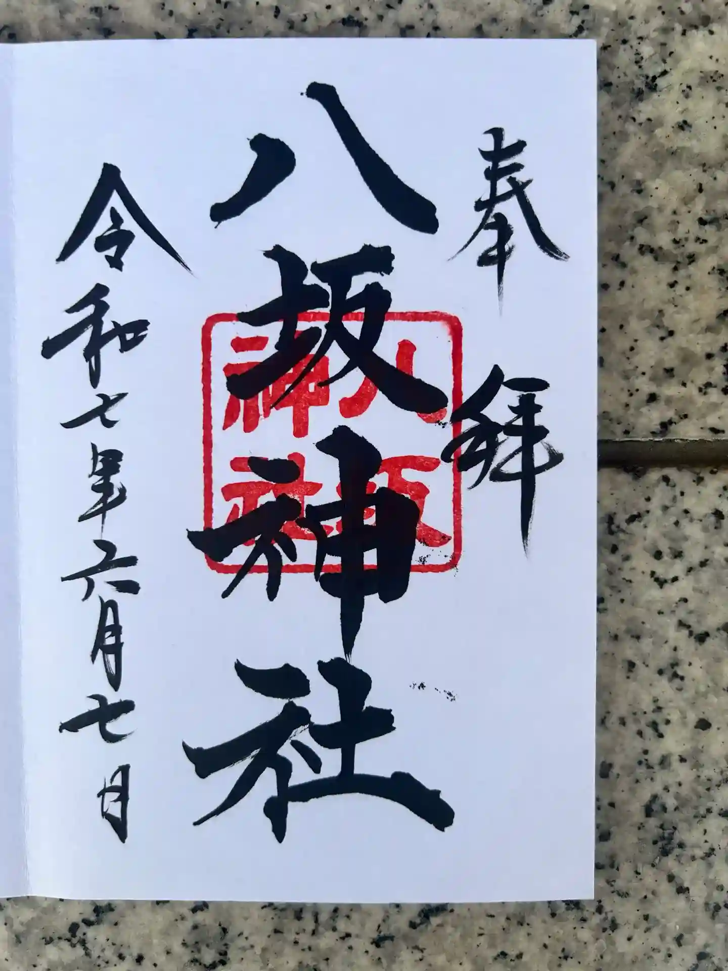 八坂神社の御朱印(書き入れ)