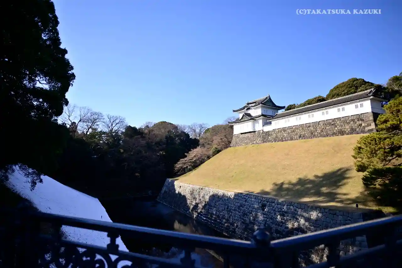 桔梗門から富士見櫓→宮内庁前→長和殿→伏見櫓→二重橋が見える所→長和殿→乾通り