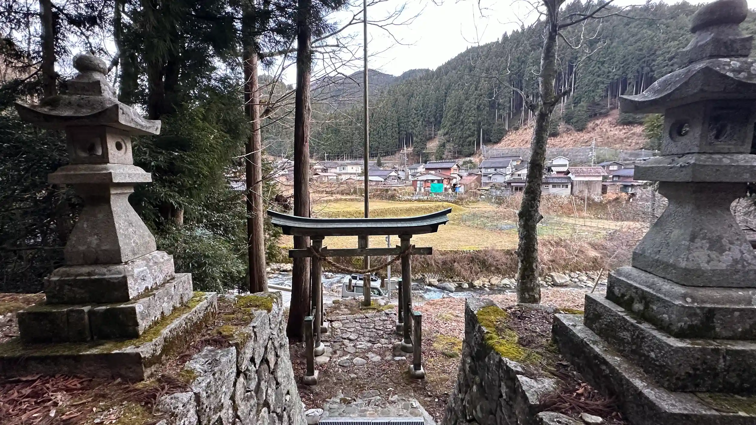 千代川のすぐ畔に鎮座されています、木製の両部鳥居に注連縄が綺麗にかかっています、社左には杉の巨樹、右には杉の巨木の切り株かなり大きなものではなかったかと思われます。拝殿は切妻妻入に入母屋、本殿は流造です 変わった狛犬がいるようですが 見つけられませんでした。