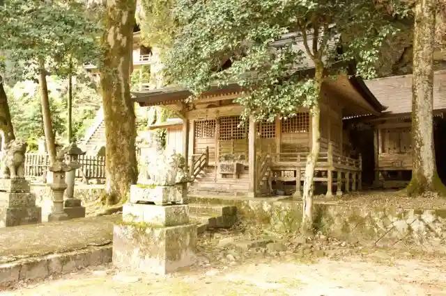 石鳥居をくぐりすぐが拝殿。本殿は後ろの岩を刳り抜かれたみたいなところにある。やや上と裏は岩壁で、岩が落ちそうで怖い。