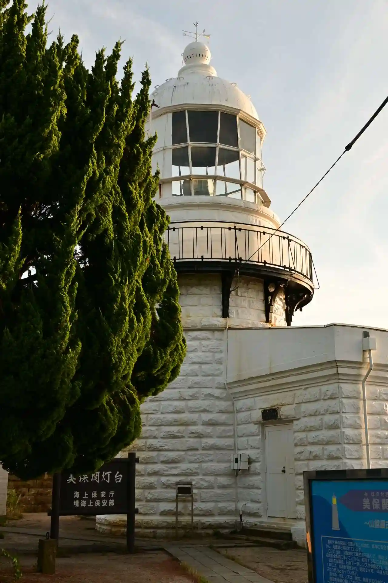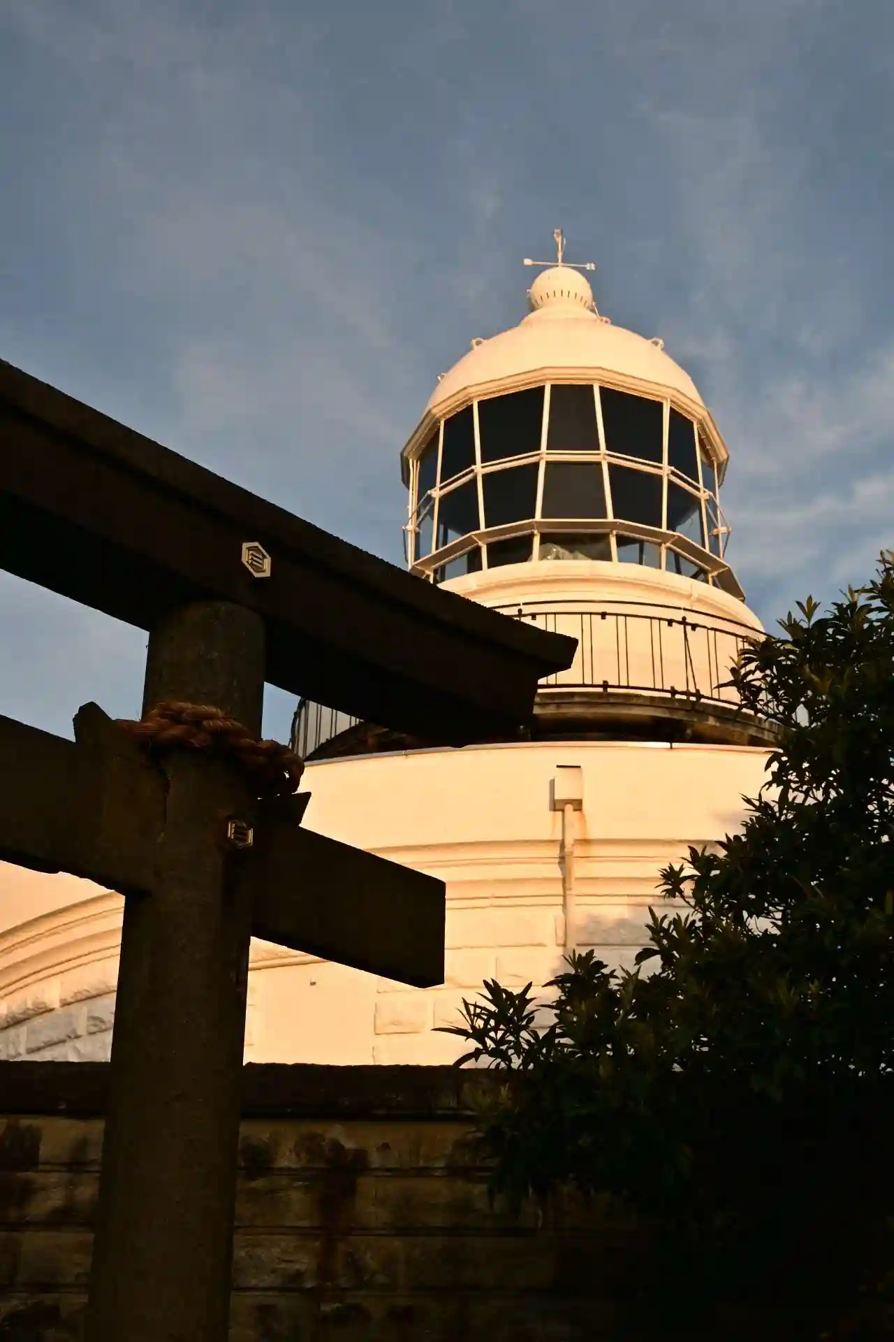 沖之御前地之御前遥拝所は、島根県松江市美保関町美保関、美保関灯台の東側にあります。この鳥居の中央4㎞先の海上に浮ぶ島を「沖之御前」、眼下に横たわる島を「地之御前」といい、共に事代主神(美保神社の御祭神・えびす様)の魚釣りの島として伝えられているところから、美保神社の境内となっているようです。