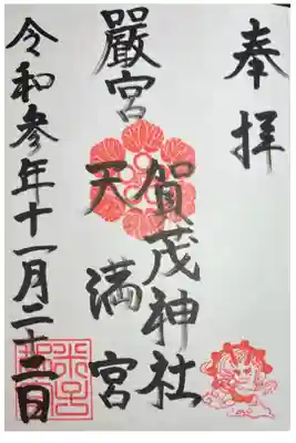 ![賀茂神社天満宮の御朱印]()