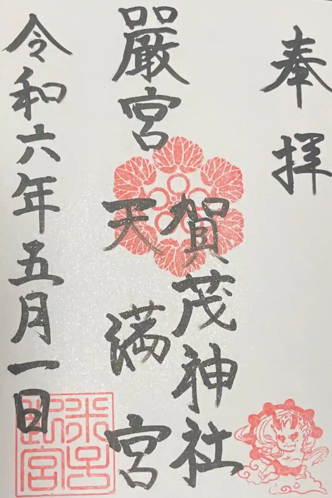 御祭神『オリジナル雷神キャラクターいつき君ファミリー』のイラスト入りオリジナル御朱印を拝受しました。こちらは書置でした。
