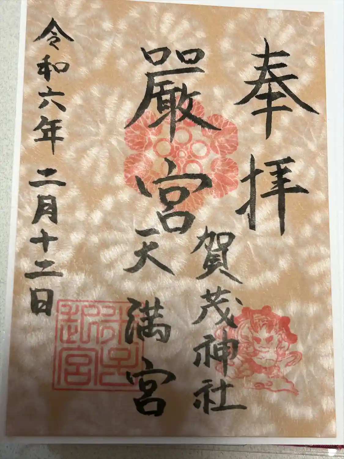 前回はコロナ禍で遥拝で郵送対応して頂きました。今回は参拝出来て良かったです。通常御朱印は直書でした。