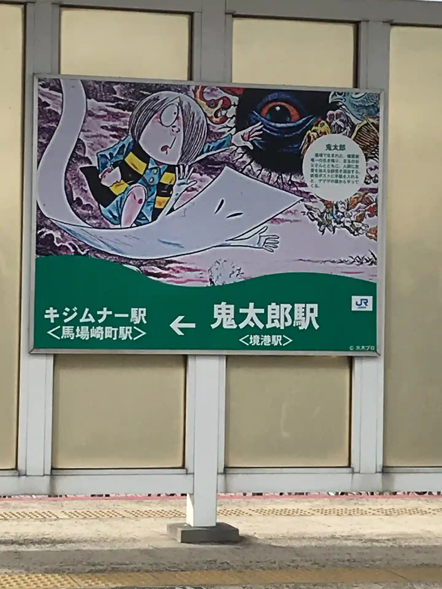 余談ですが,JR境線の全ての駅には妖怪の名前がついています。JR米子駅からJR境港駅までで米子駅はねずみ男駅,ここ境港駅はもちろん鬼太郎駅です‼️