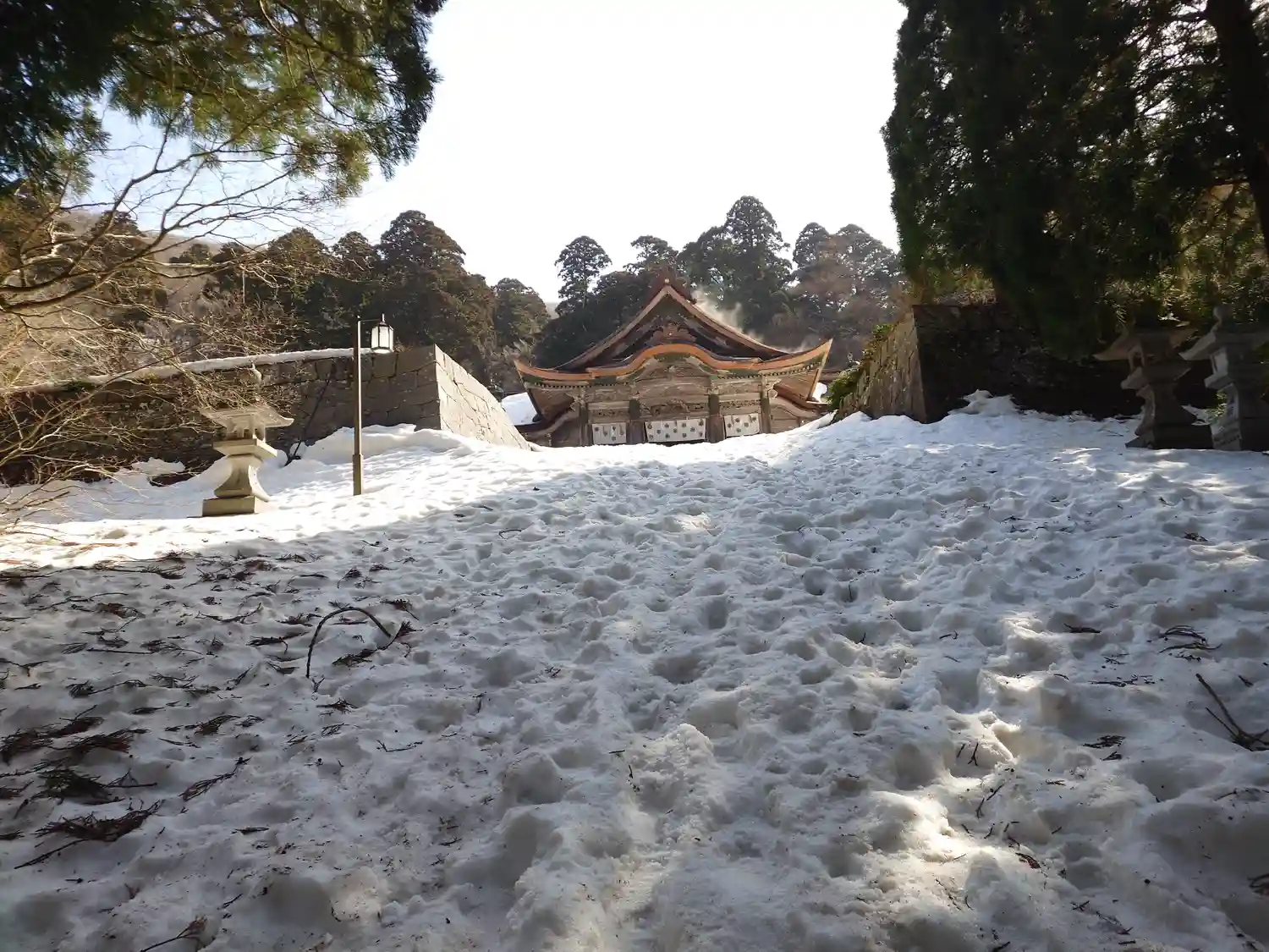 大山寺の正面入り口の山門です。道が無いね😵スニーカーの身ではどっちの道も参拝できません💦さすが雪の大山🏔