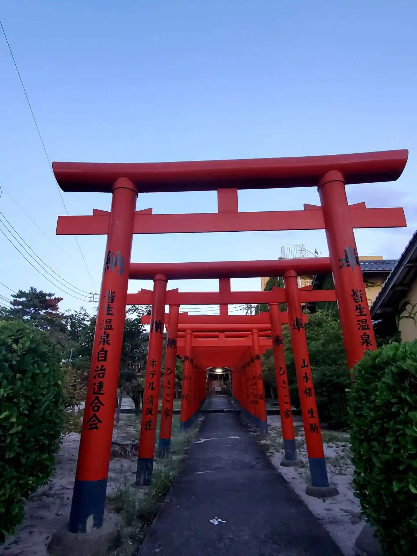 鳥居には近所の旅館の人たちによって奉納されて名前が書かれています。