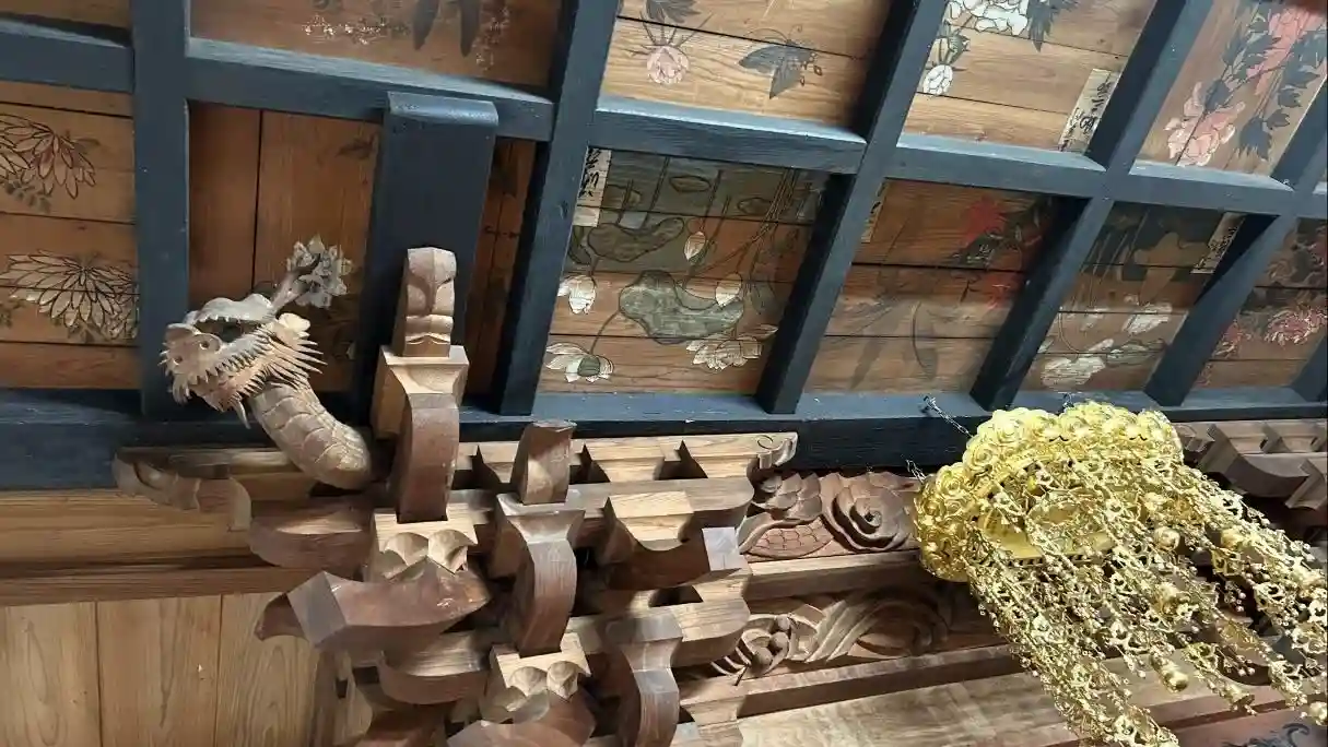 本堂の天井には江戸時代後期の水墨画「龍渓図」(玉雲斎 作:縦3メートル横4メートル)が描かれていま…