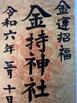 「金運招福」「金持神社」年号日付が墨書きされています。