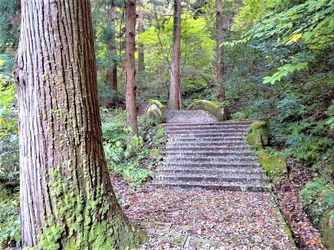 最寄りの駐車場(滝山公園)からは約700mもある参道を通って境内に入ります。この参道ですが、杉や自然林に囲まれた気持ちの良いところで清々しく感じました。意外と境内にはそこそこの参拝者がいらっしゃいましたが、観光目的で来られた方もいるようです。