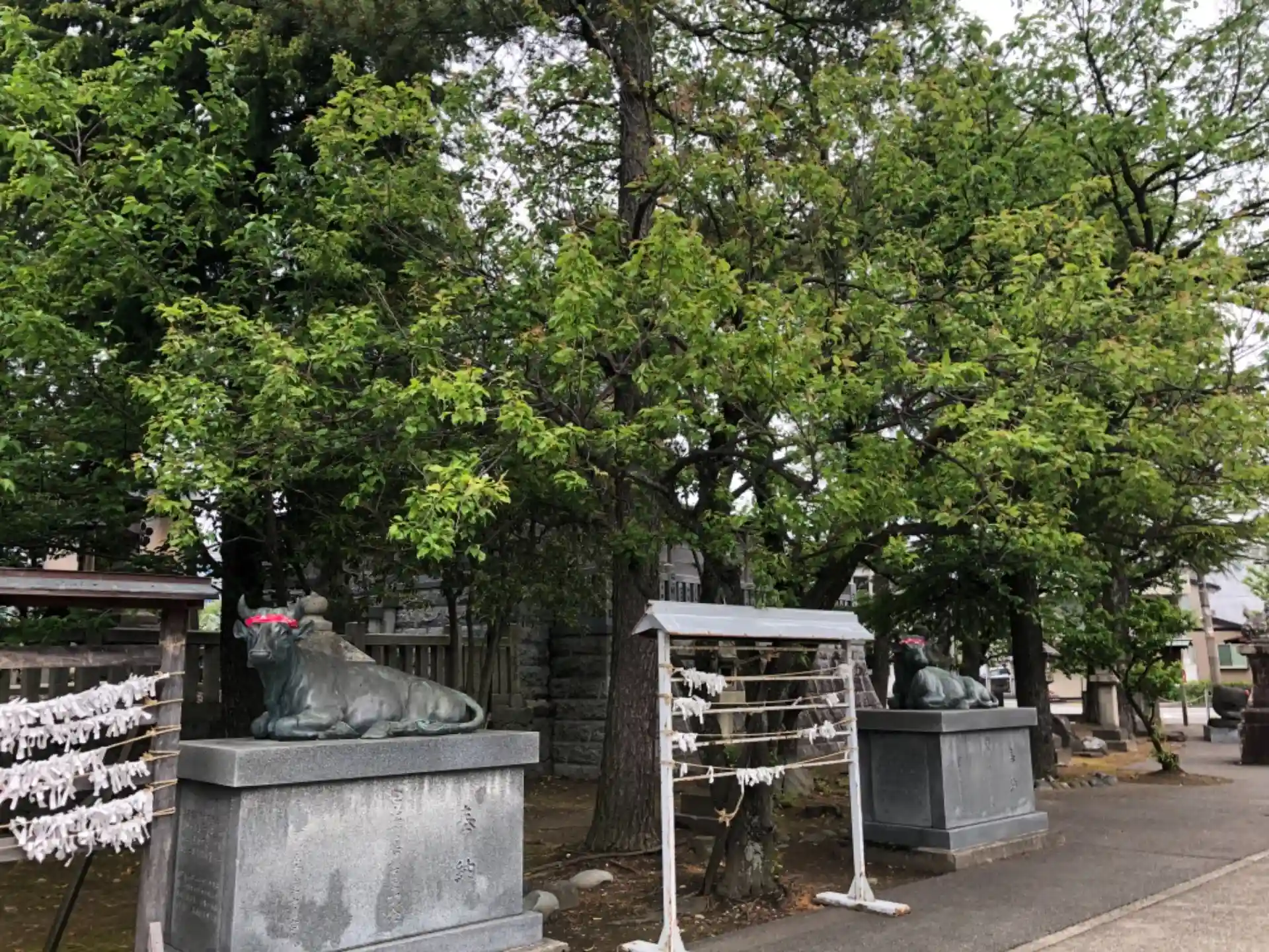 スーパーマーケット近くの神社。幼稚園あり。牛がたくさんいて、学業成就の祈願御守りあり。天神様だったんだー。週3くらい通ってましたが初のお参りです。