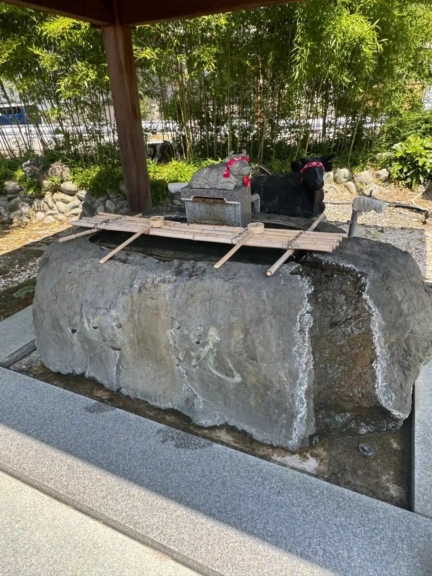 手水舎です。真ん中に何かいらっしゃると思ったら…