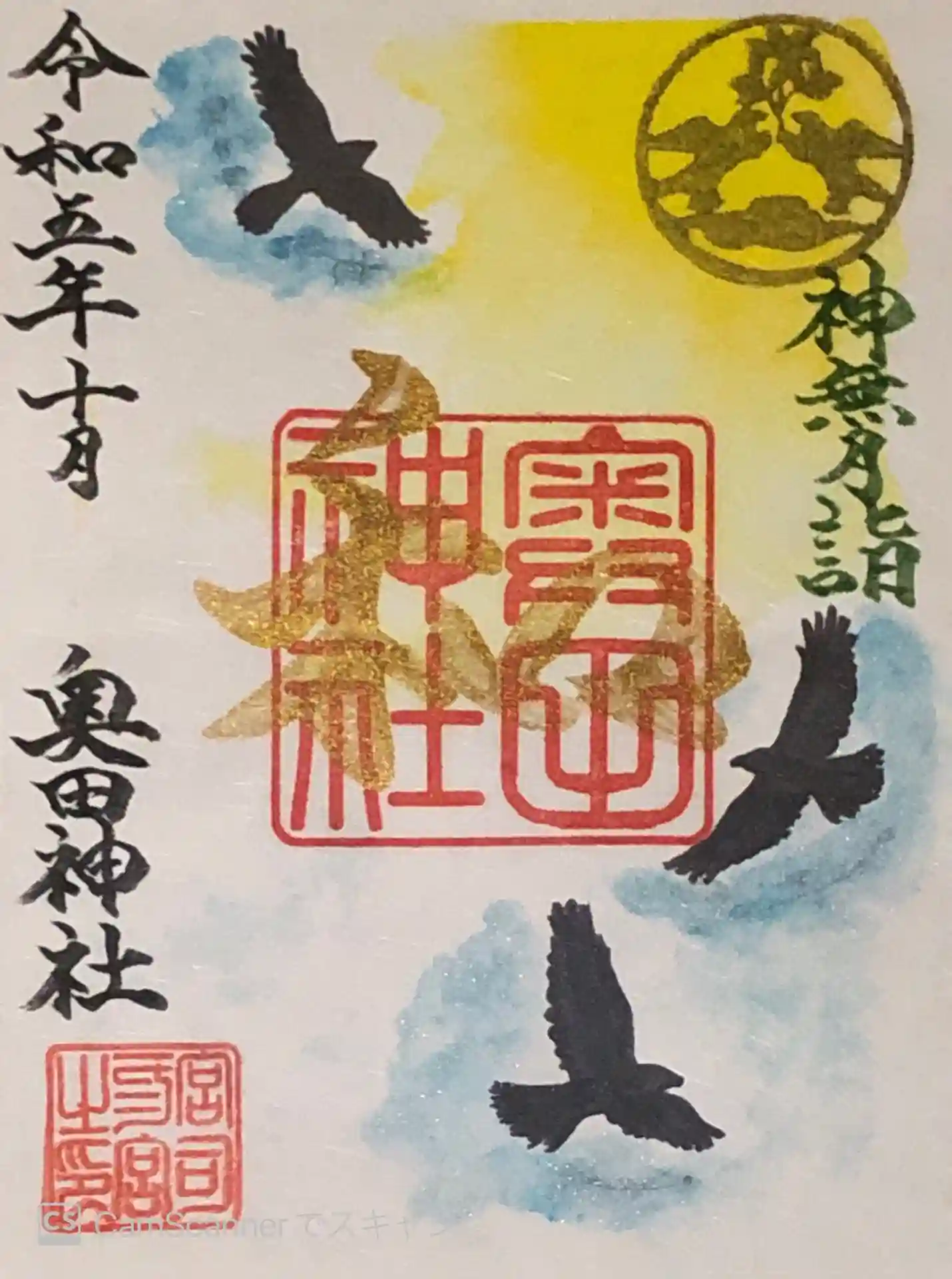 奥田神社さんの導き八咫烏の切絵御朱印です。