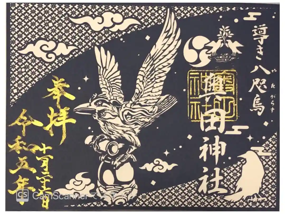 奥田神社の導き八咫烏の切絵御朱印です。