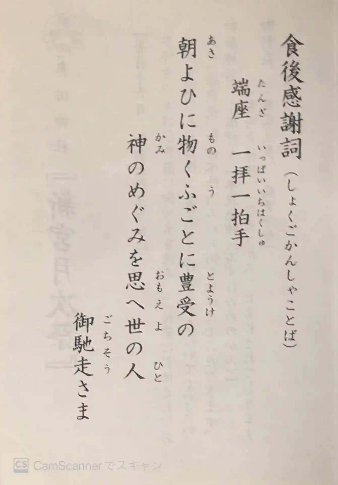 食後感謝詞(しょくごかんしゃことば)