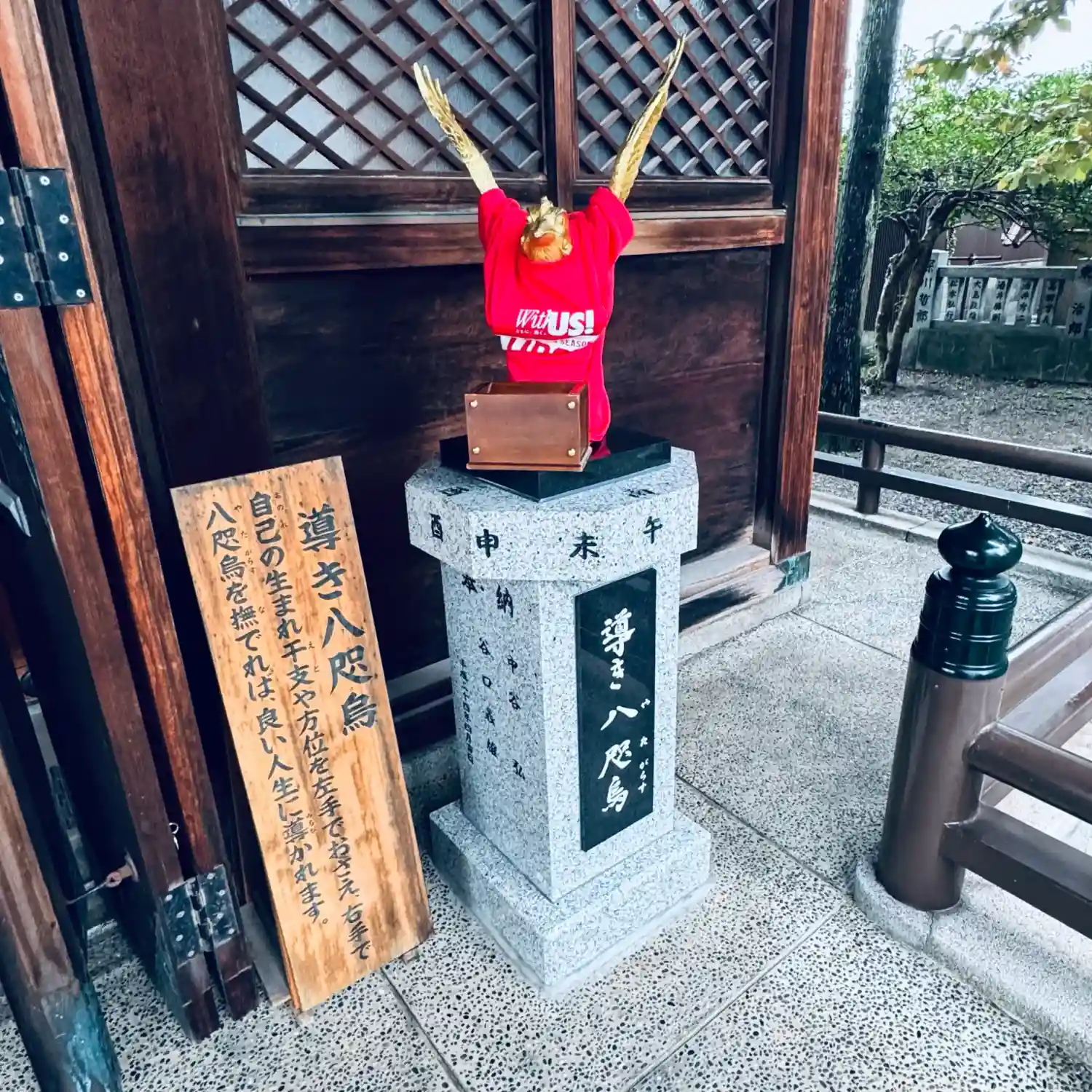 【】私の好きな八咫烏が置かれており、勝手に興奮していました。羽根守りも頂いたので、どこに付けようか…