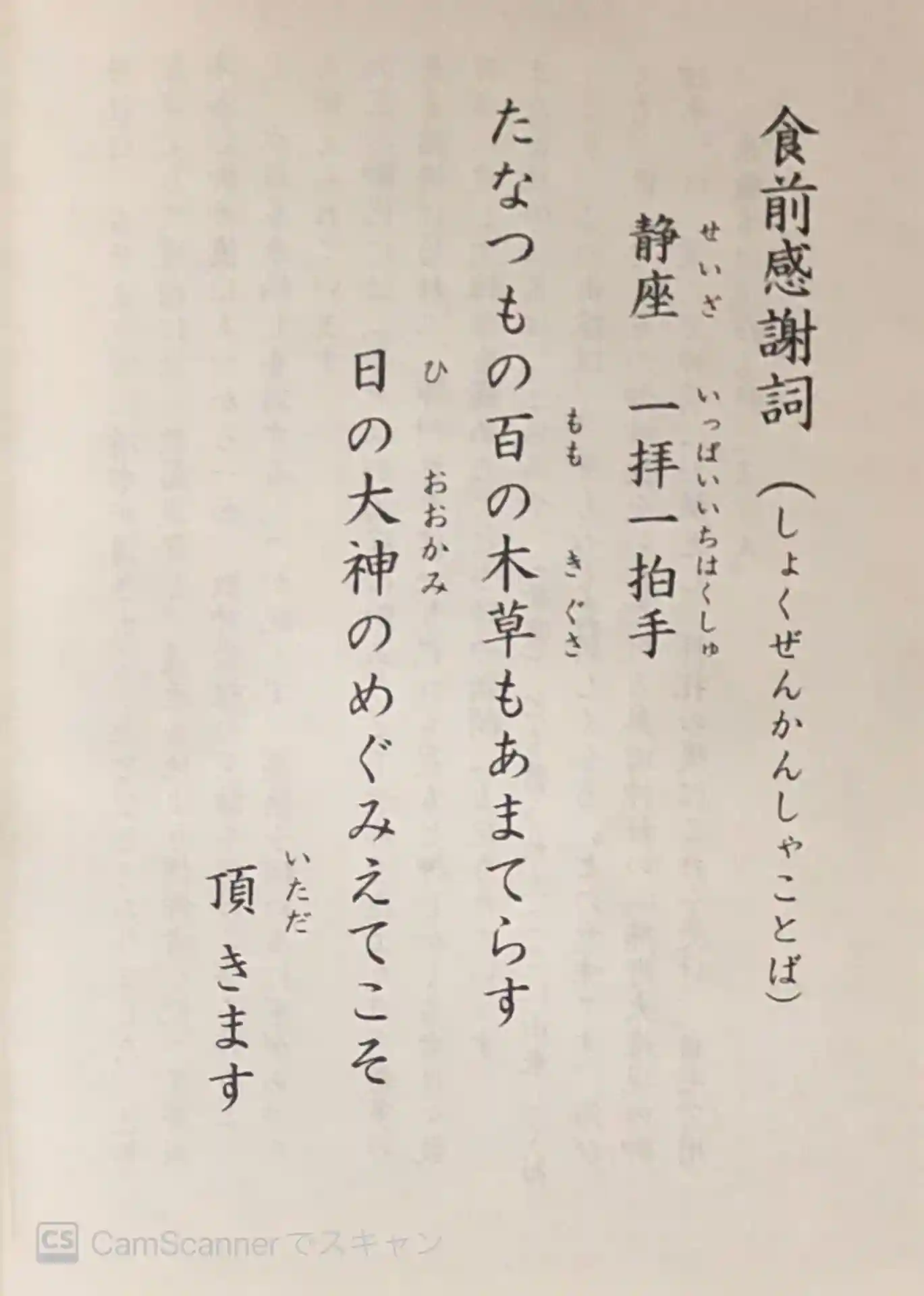 食前感謝詞(しょくぜんかんしゃことば)