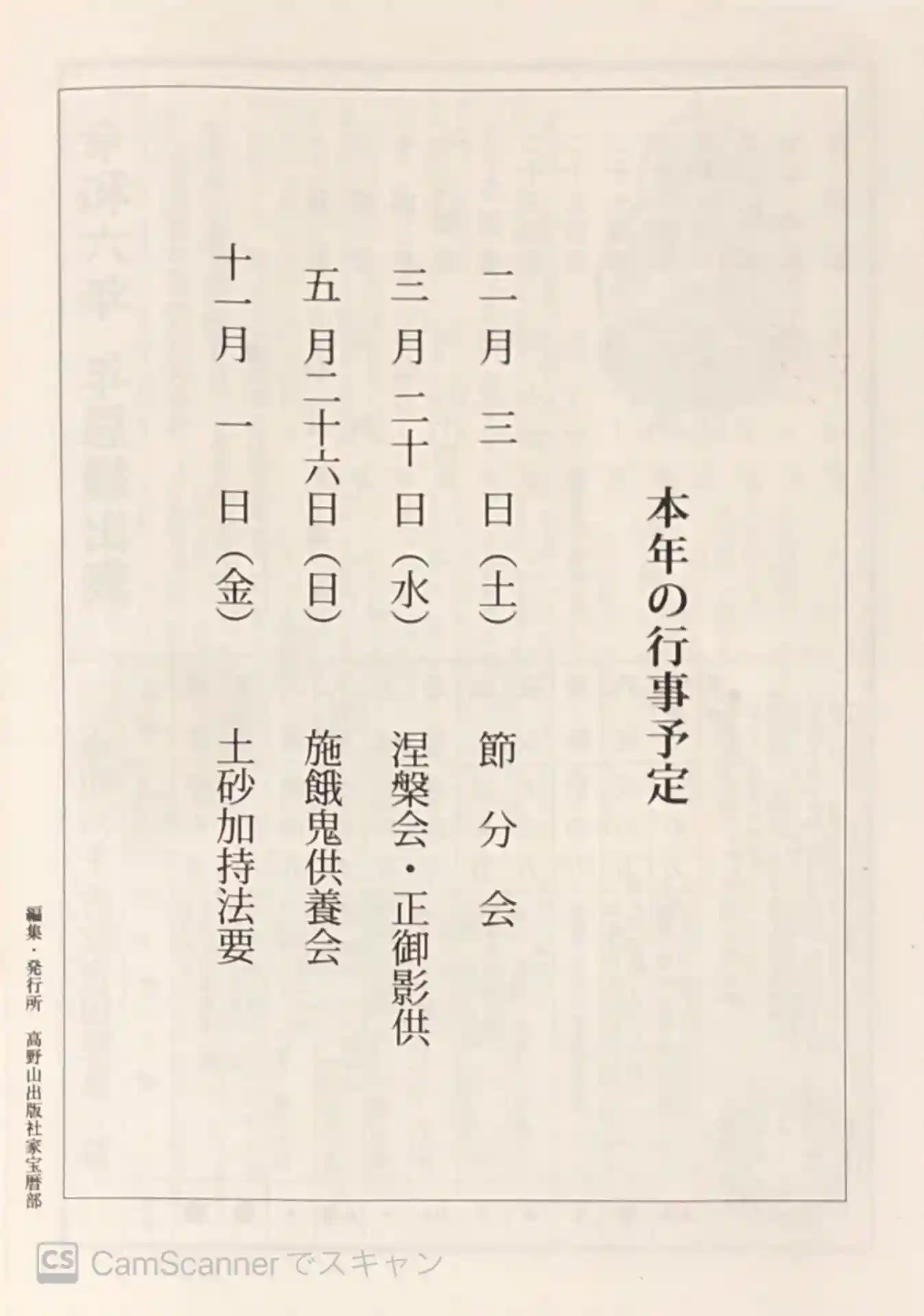 海禅寺さまの本年の行事予定です。