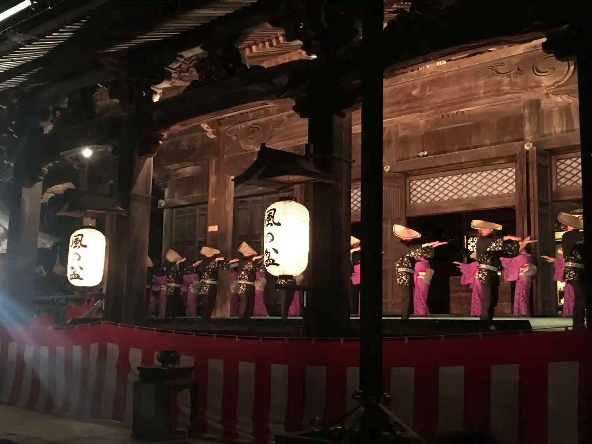 聞名寺の本堂が踊りを披露する会場のひとつとなっている。