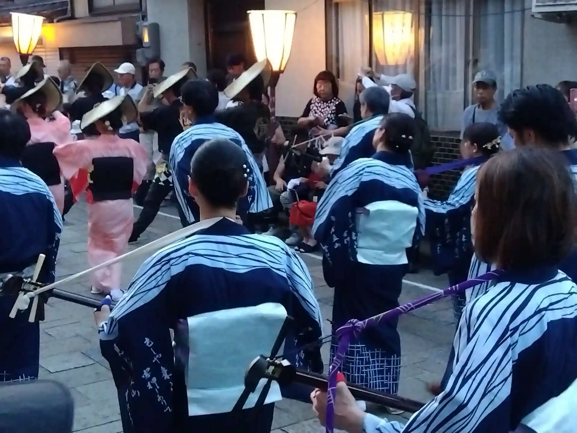 うどんを食べ終わった頃に夕暮れとなり、諏訪町通りで民謡踊りをじっくり堪能しました🙋