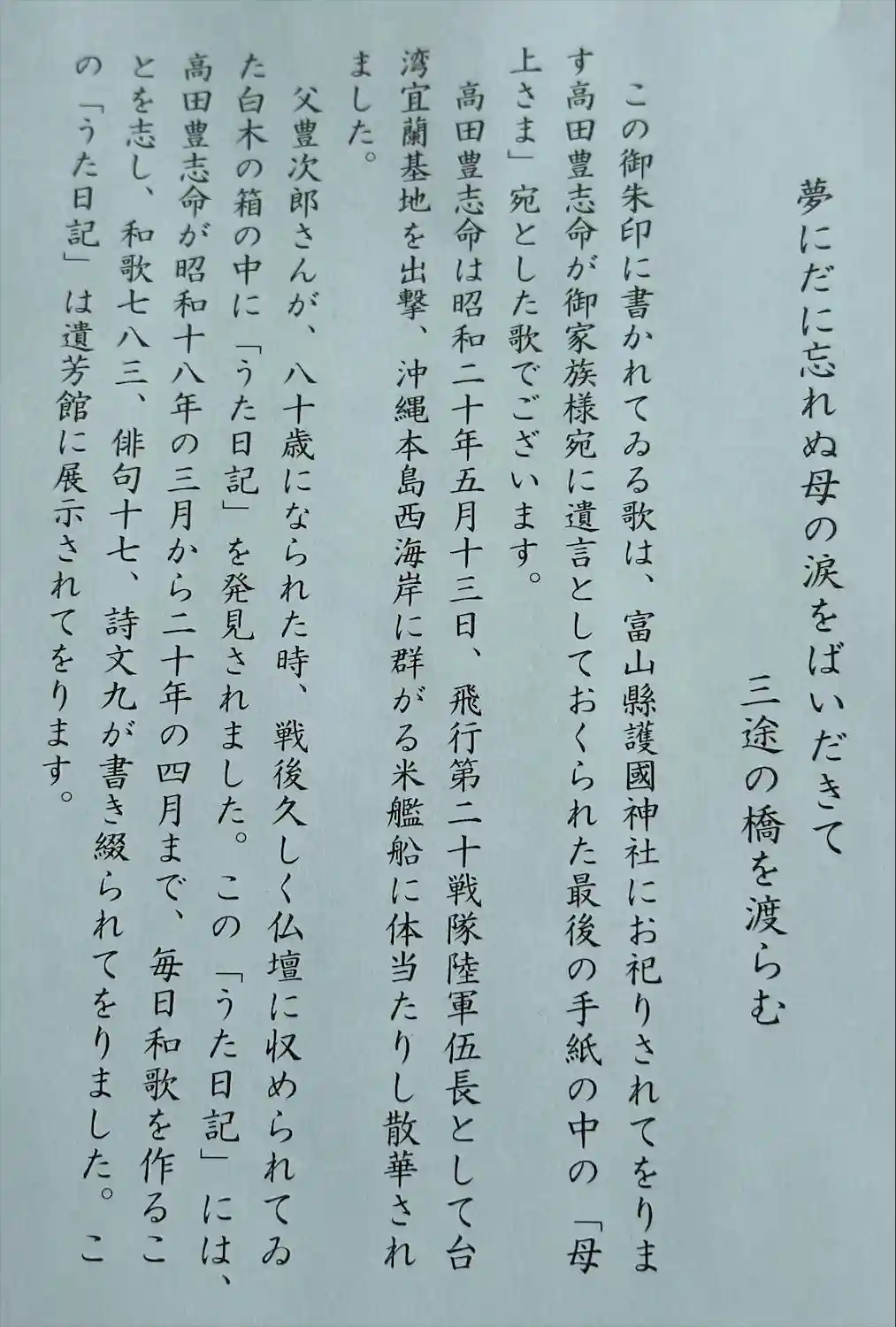 高田豊志命 遺詠。