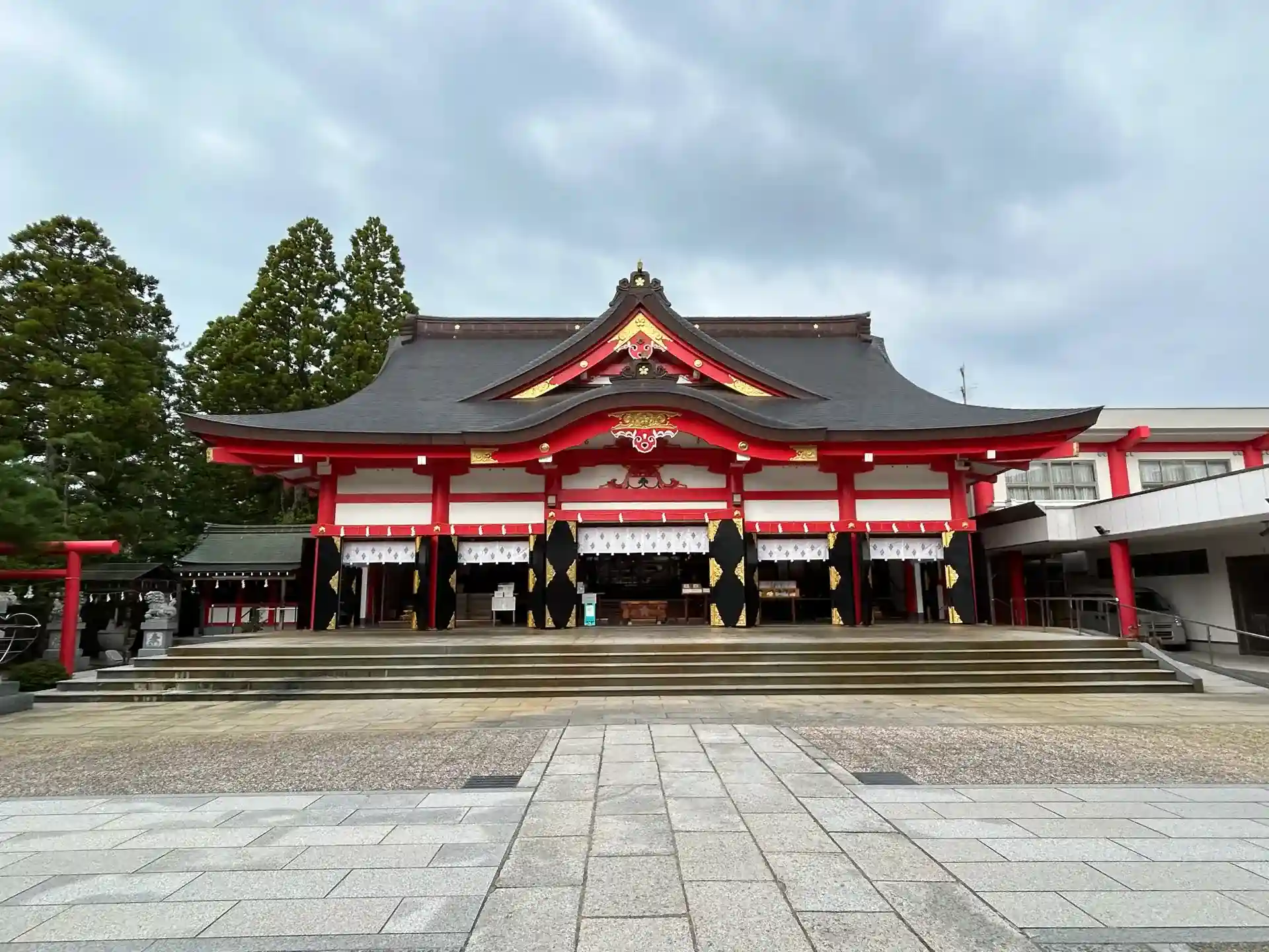 拝殿は朱色を交えた綺麗で大きな拝殿でした。