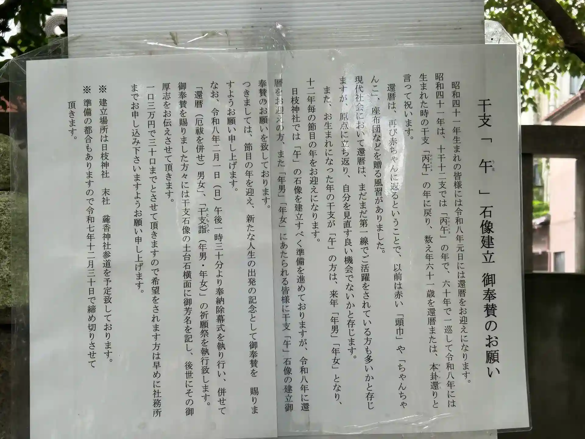 馬石像御奉賛のお願い