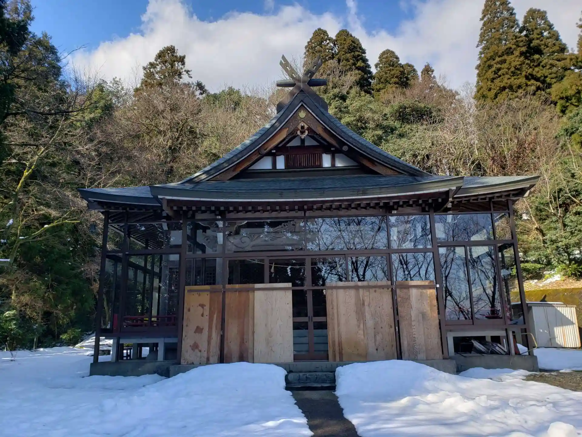 雪の中にたたずむ神社です。
