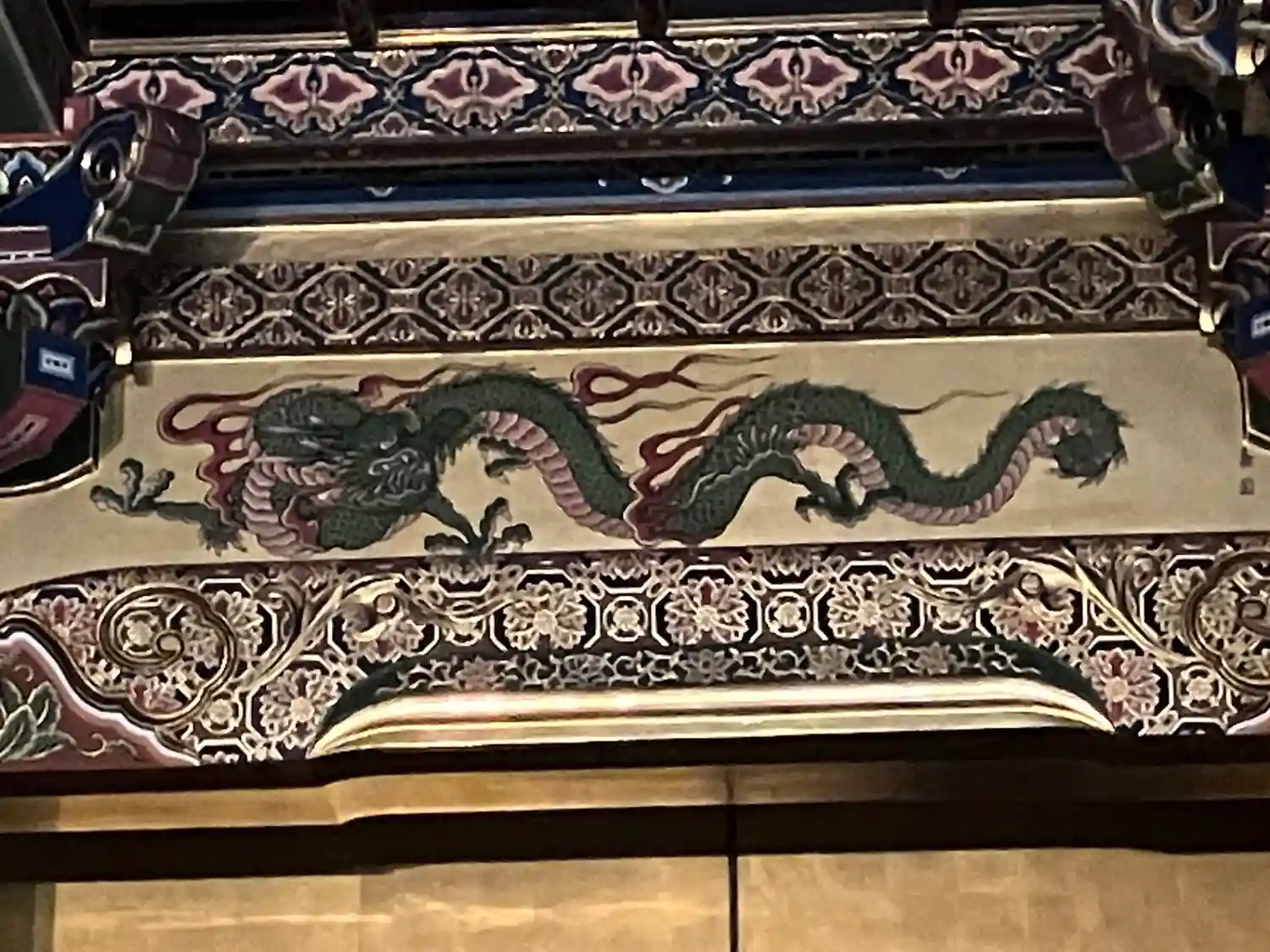 内陣手前の欄間に掲げられた扁額。