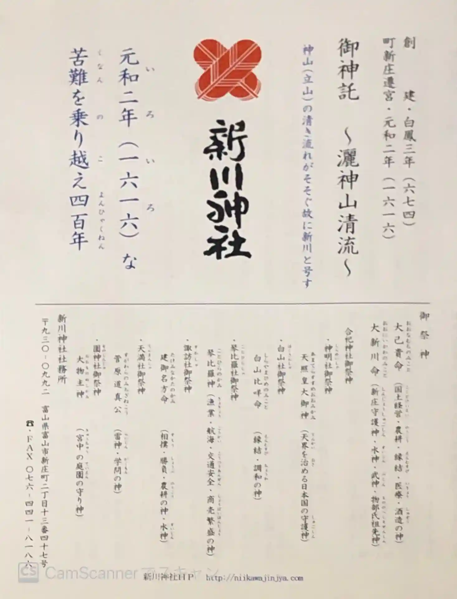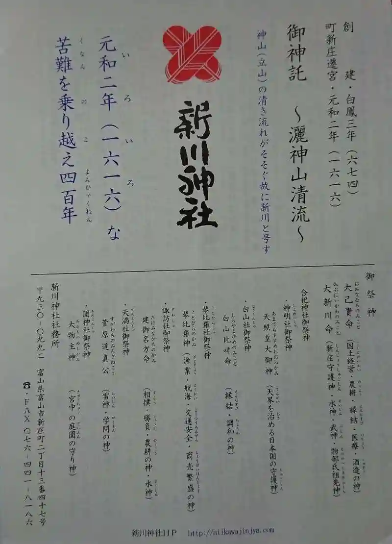 新川神社さんの御神託をいただきました。歴史や古文書の内容が記載されています。