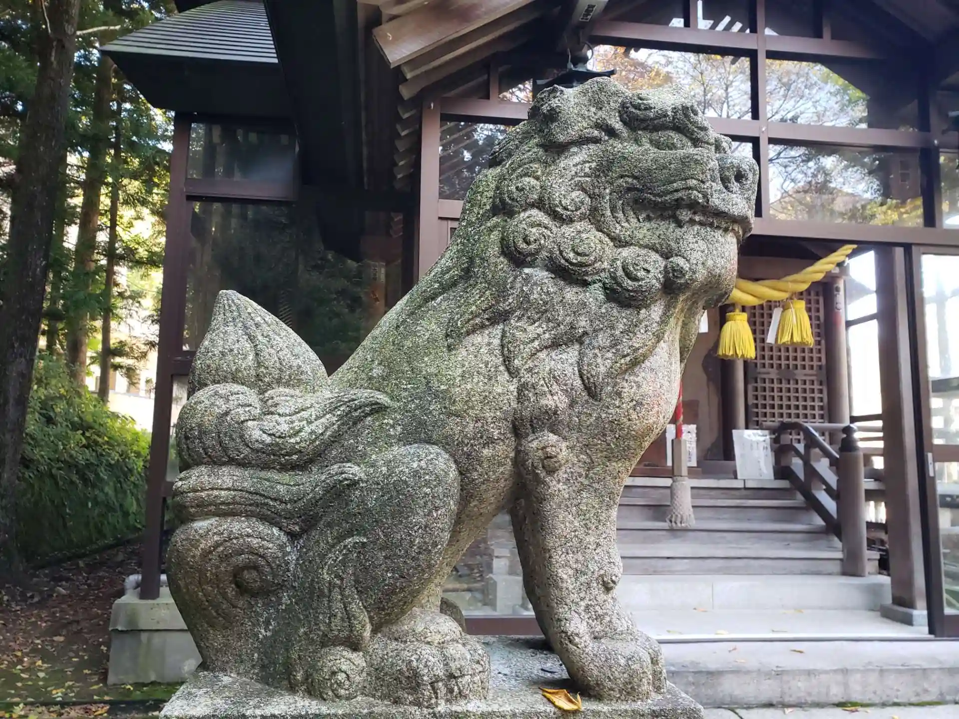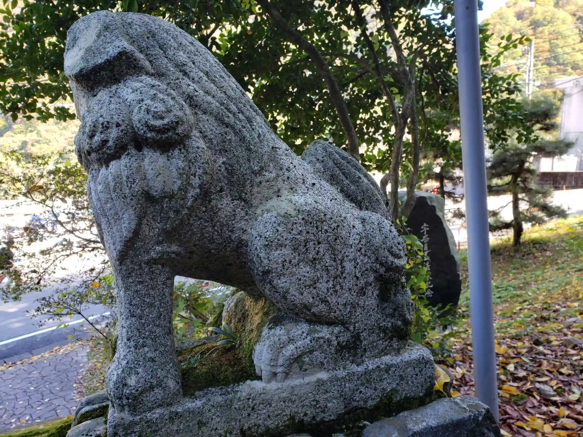 トロッコ電車が走っている、宇奈月温泉駅の近くにある苔に覆われた神社です。紅葉を見る観光客でとてもにぎわっていました。