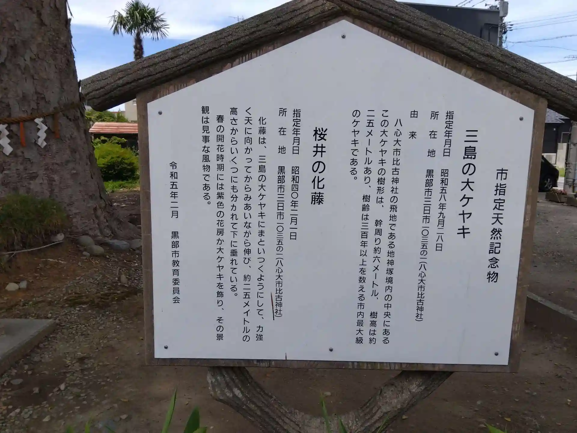 飛地(道向かい)の「三島の大ケヤキ、桜井の化藤」は市の天然記念物です。