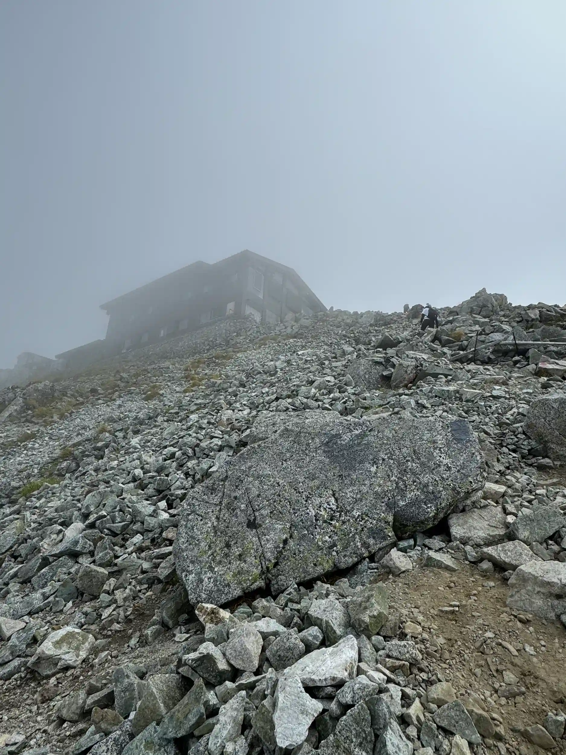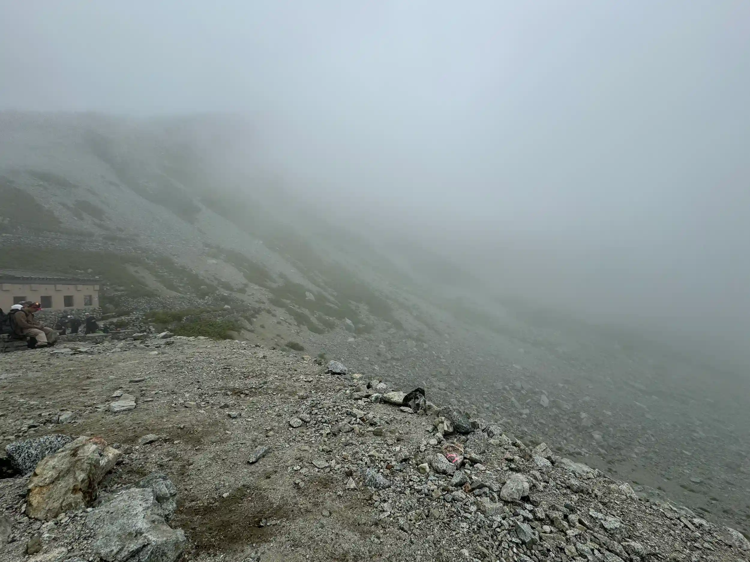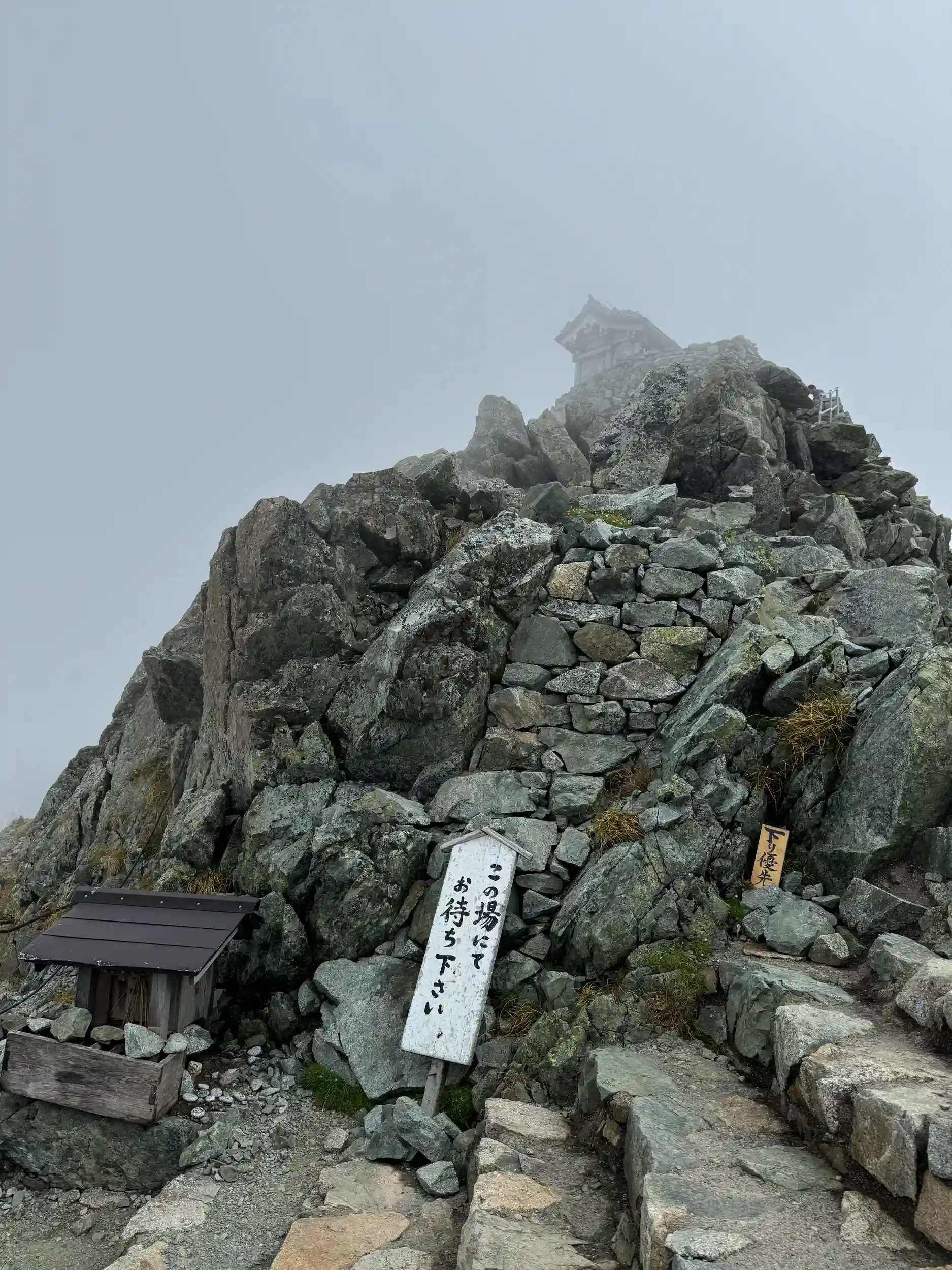 登り時は視界15〜20mあるかないかの状態で、2990m付近でも社務所の建屋が全く見えませんでした😂