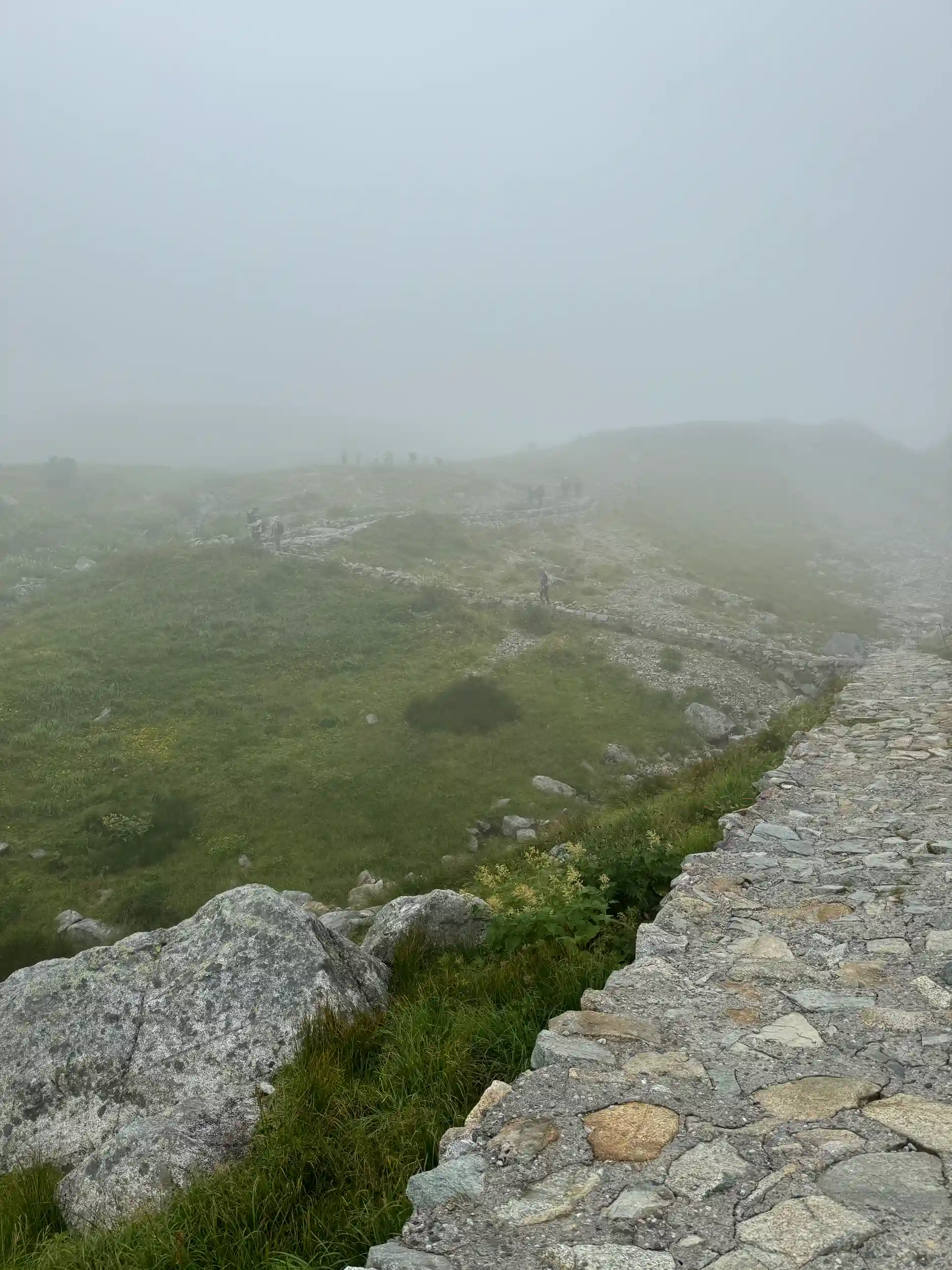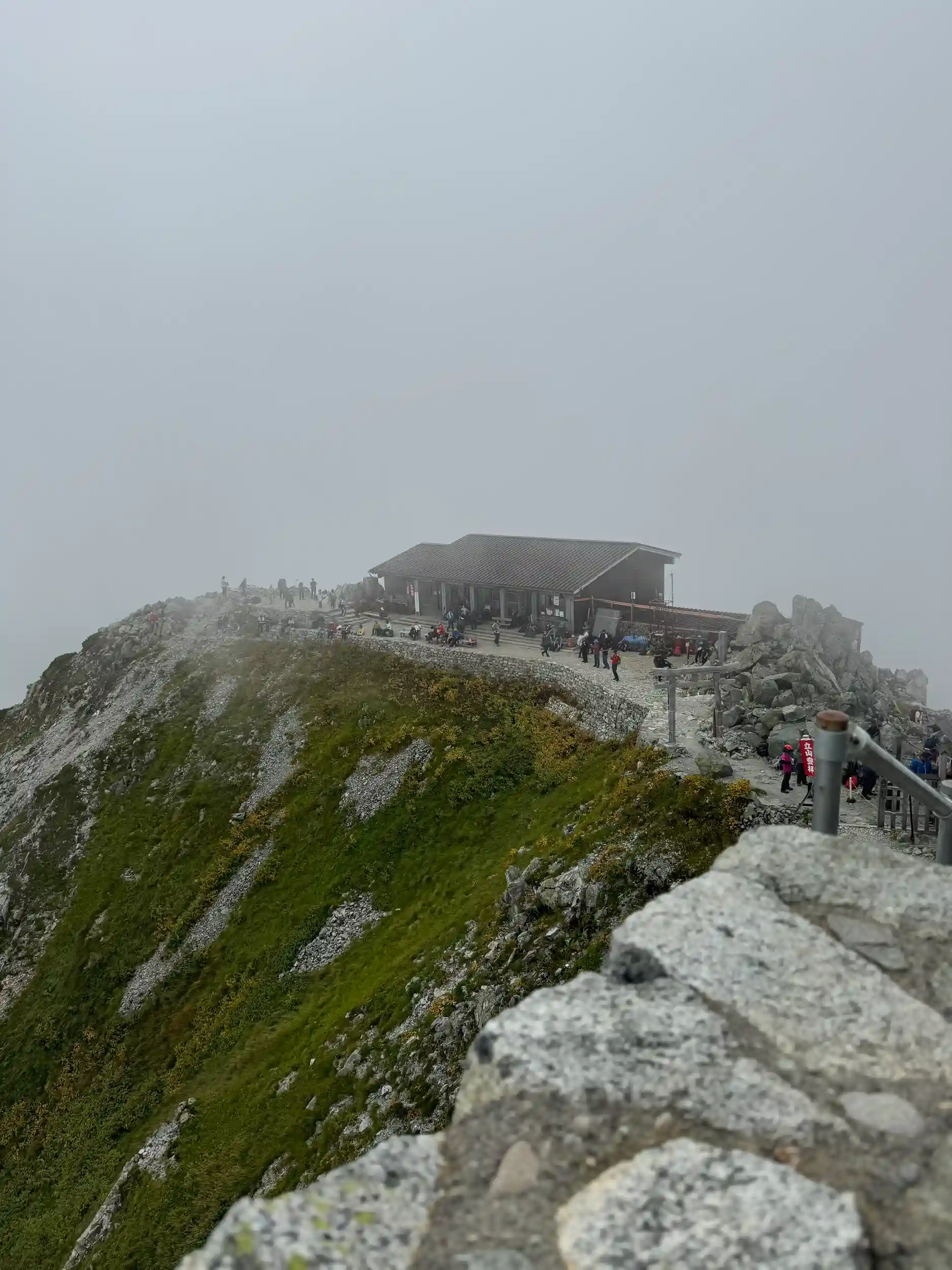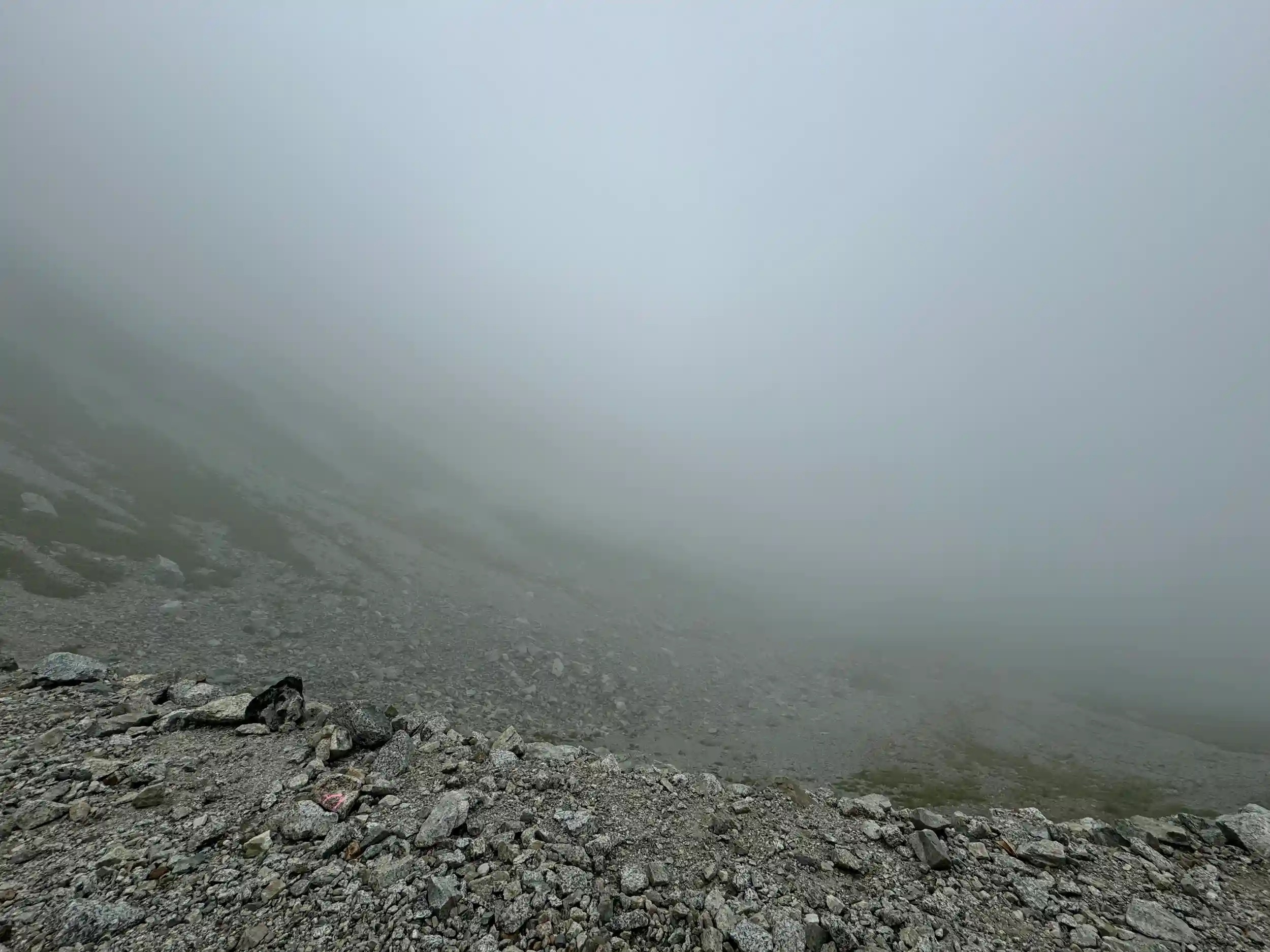 登り時は視界15〜20mあるかないかの状態で、2990m付近でも社務所の建屋が全く見えませんでした😂