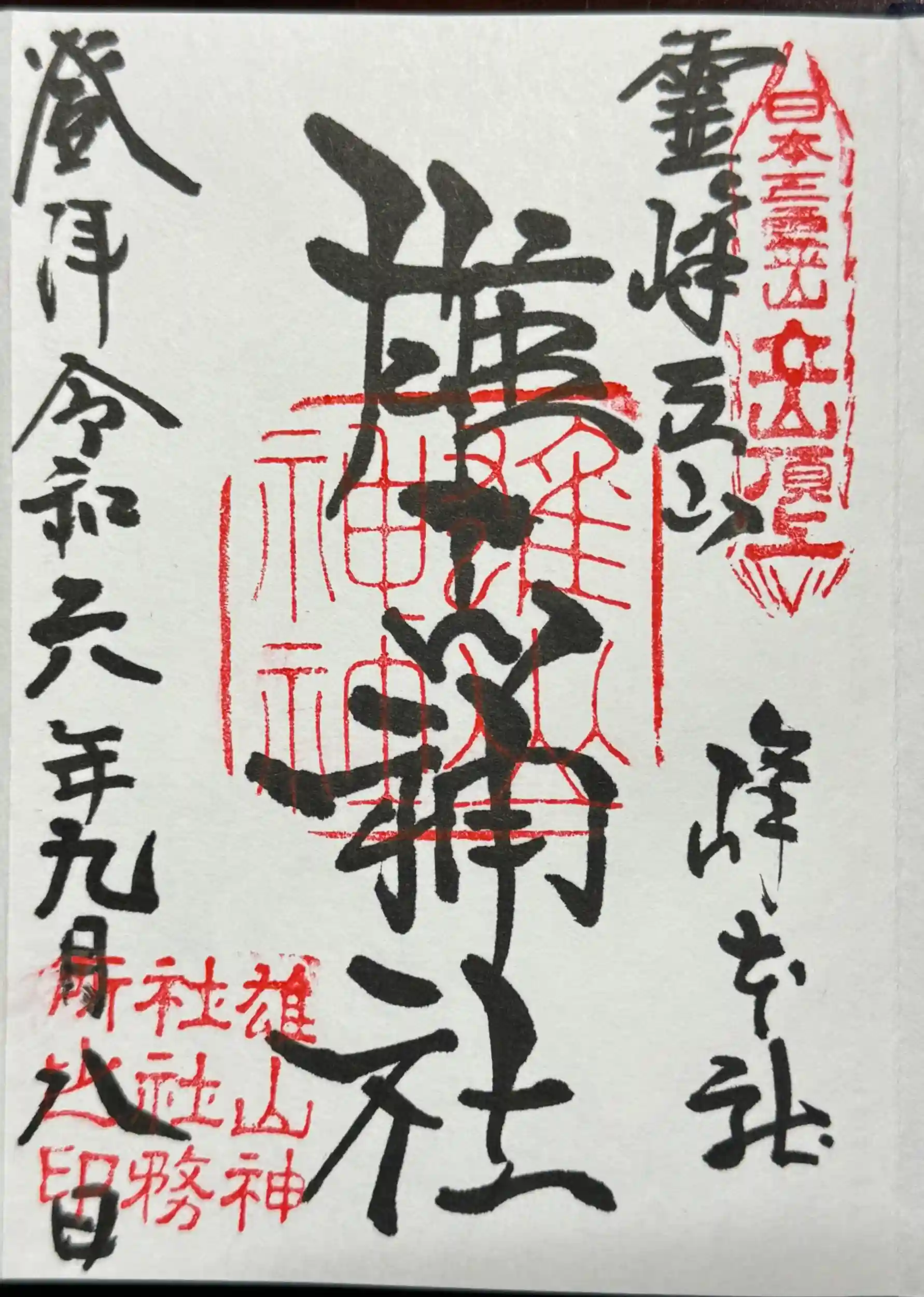 雄山神社峰本社で拝受した御朱印帳に書入して頂きました。