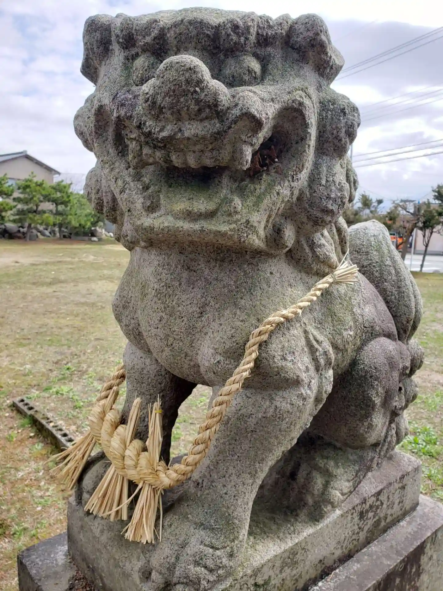 [かづみごうじんじゃ]と読む神社です。ニコニコ顔が癒される狛犬さんです。