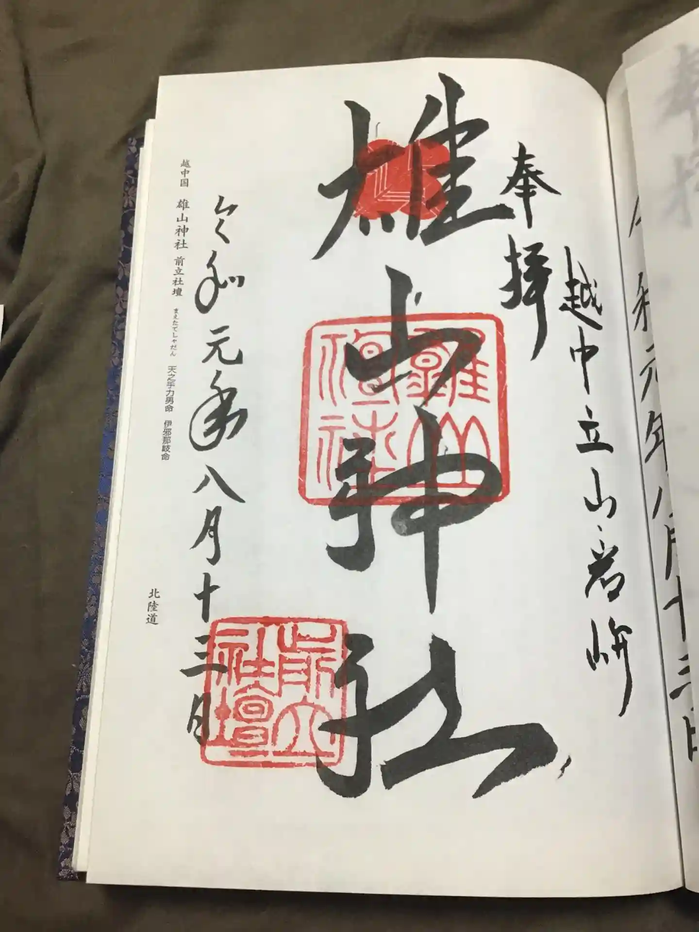 雄山神社前立社壇の御朱印帳