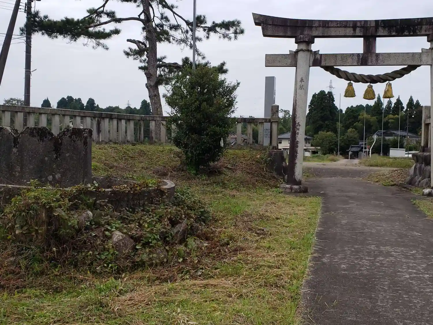 田んぼの真ん中に鎮座する神社です。新旧四体の狛犬さんが迎えてくれました。