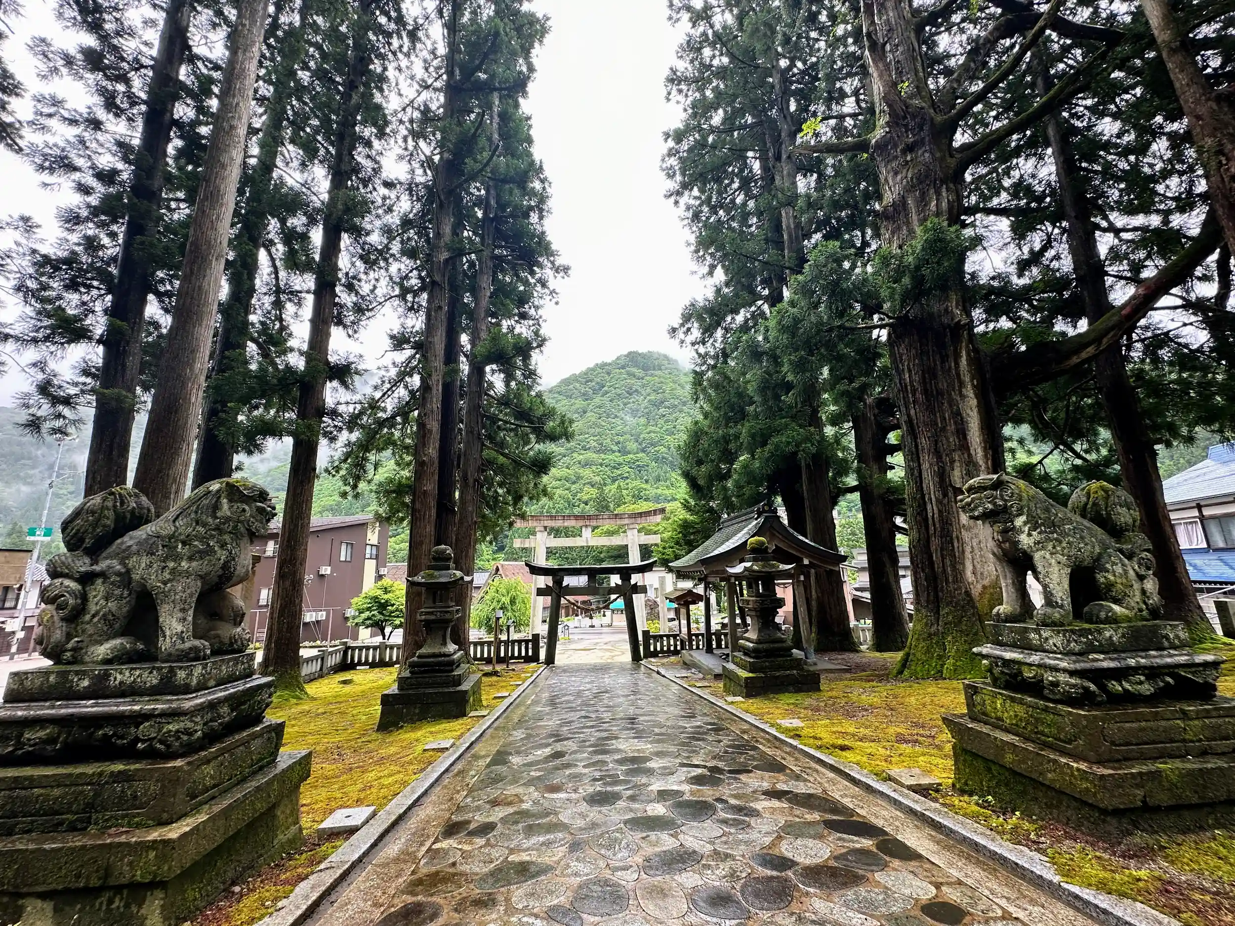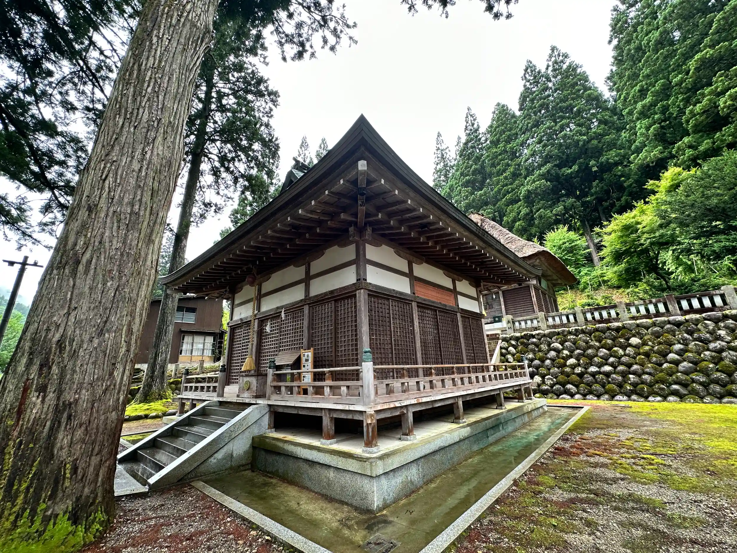 巨木マニアにはたまりません。世界遺産、五箇山の菅沼集落と相倉集落のちょうど間にあります、一間社流造で正面中央の蟇股は一木を刻んだ室町中期の優れた作で、国の重要文化財に指定されています