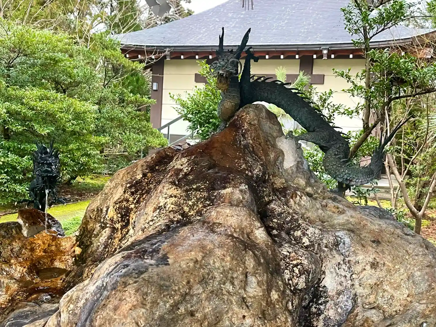 拝殿には神話・因幡の白うさぎにちなんだ「なでうさぎ」像があり、多くの参拝者が癒してもらいたい部位と同じ所を撫でています。